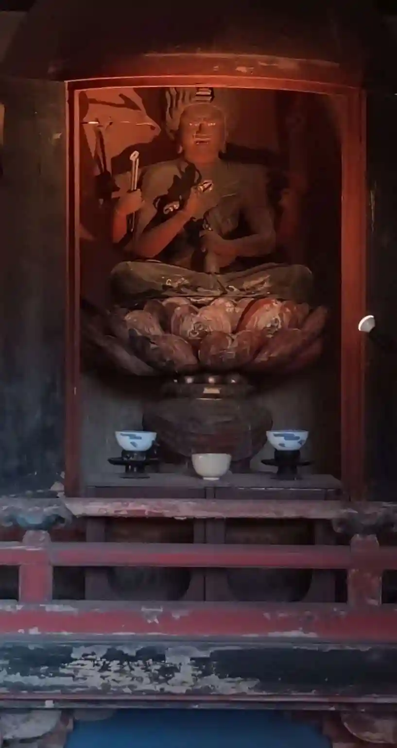 ふと見ると、朝日に輝く愛染堂 誰もいないので中を覗くと