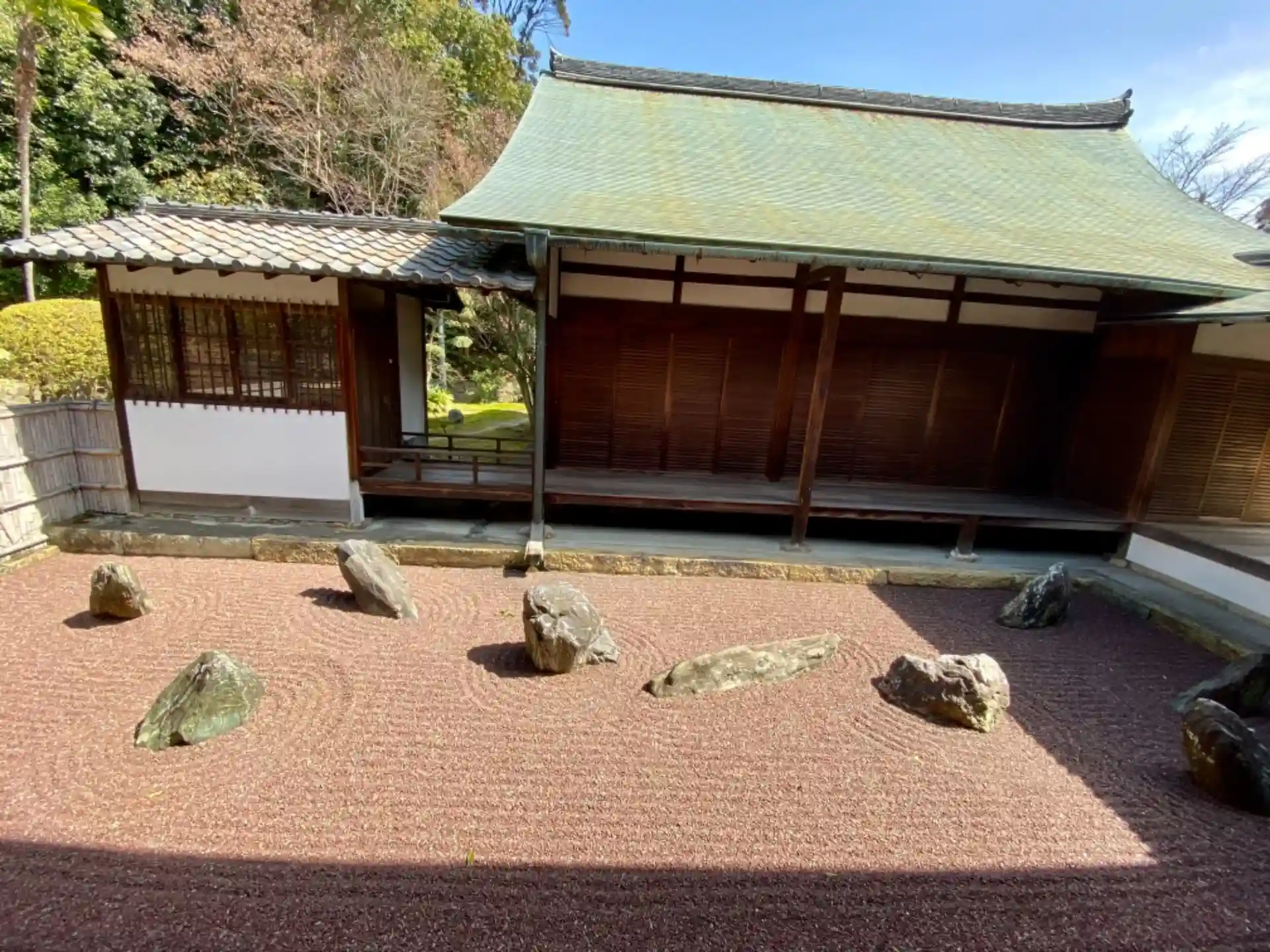 一木一草をも用いない簡素な白砂敷き。