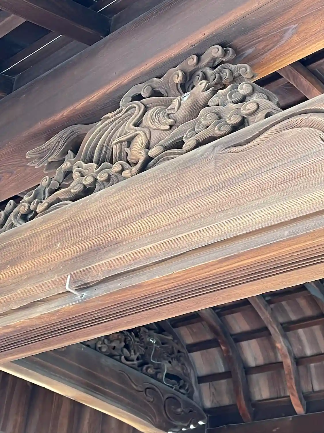 創建の詳細が不明な瀧尾神社ですが歴史は古く平安時代以前、社号と場所を幾度とかえ最終的にこの地に鎮座。現在の社殿は大丸百貨店の創業者である下村彦右衛門(しもむらひこえもん)によって造営、後に下村家によって現在の貨幣価値にして”約5億円”をかけて本殿、拝殿、手水舎、絵馬舎が整備され現在に至ります。木彫りのが迫力満点で神社の方が色々説明してくれました。