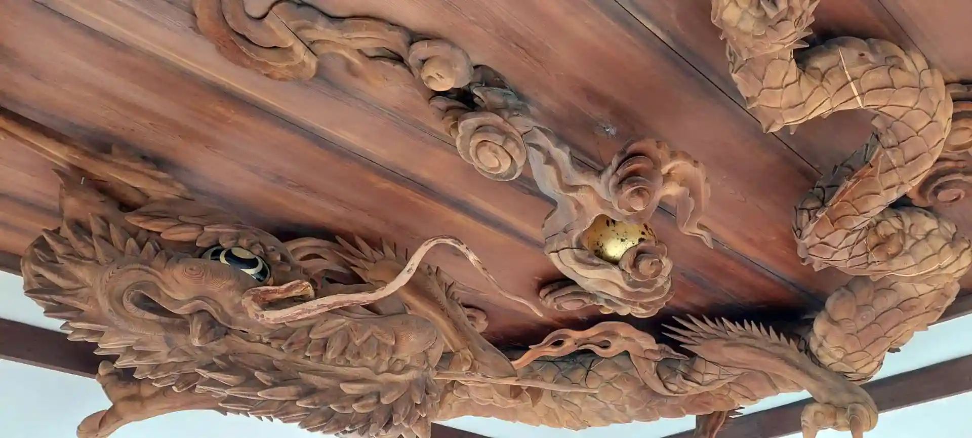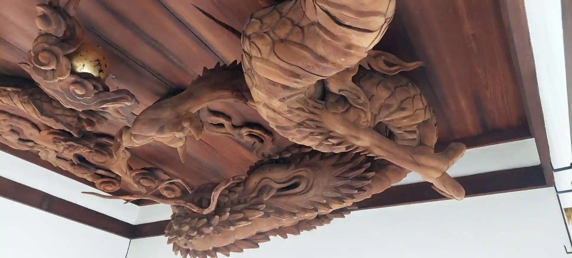 下から見上げてみる龍は、本当に素晴らしいです。木彫りの細かい細工までがよく見れます。