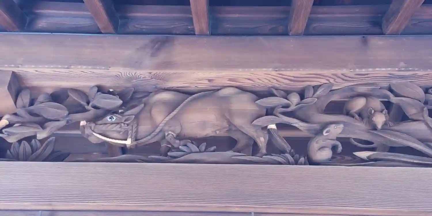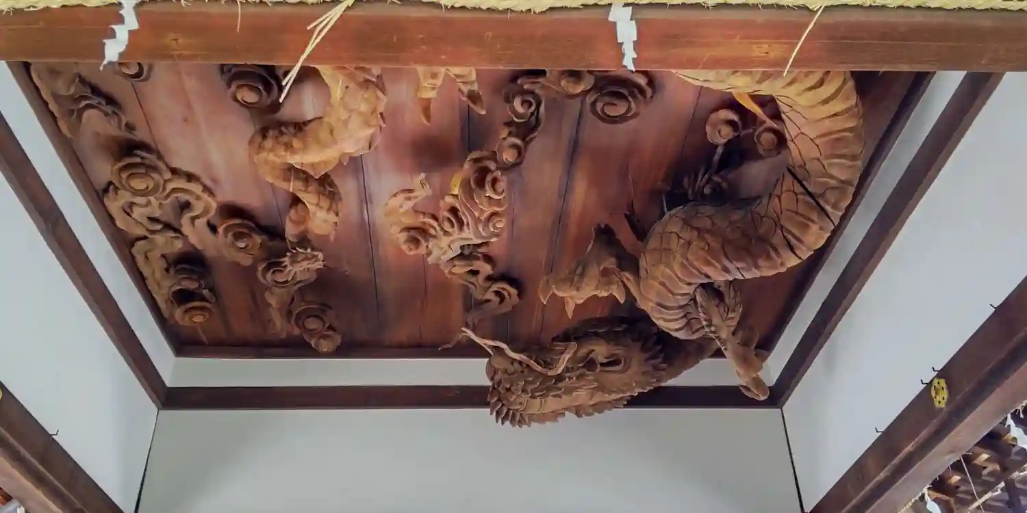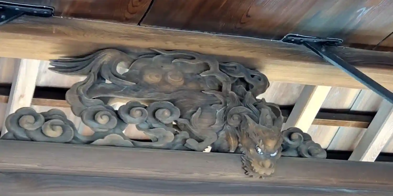 龍の木彫がある拝殿