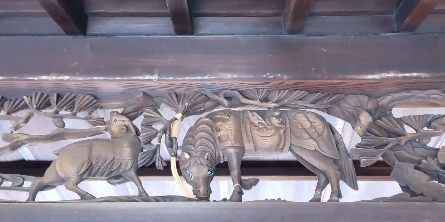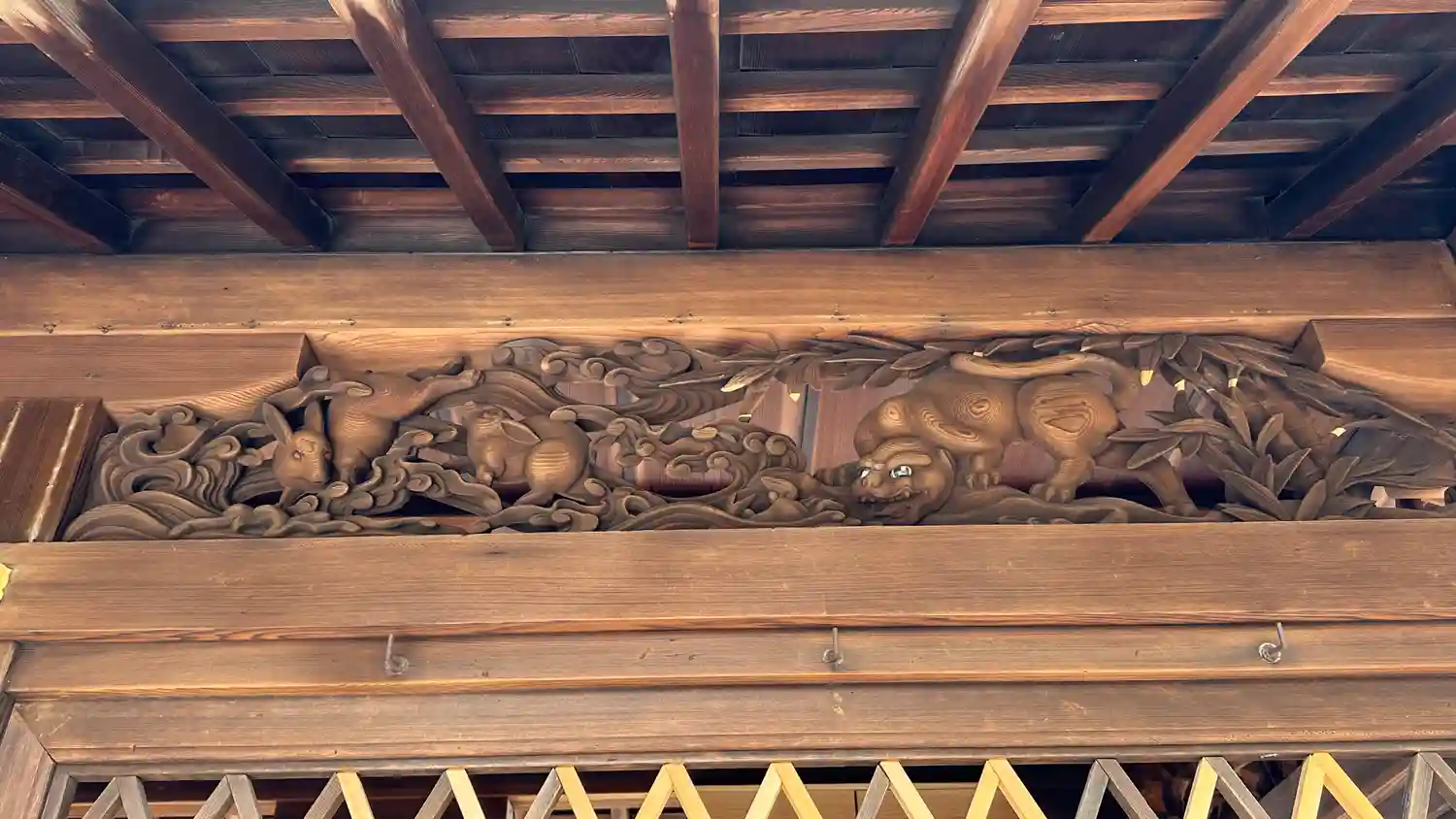 懸魚部分に鳳凰の彫刻や他にも色々な彫刻が本来ならあるはずなのですが、おそらく工事のために外されているようでした。