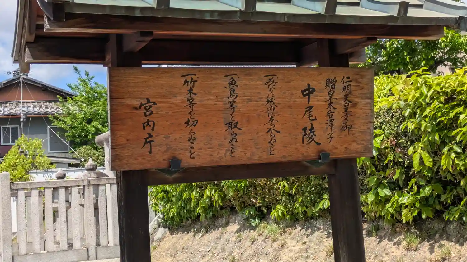 | ご由緒 | 今熊野宝蔵町(いまぐまの-ほうぞう-ちょう)の住宅地の一角に中尾陵(なかつおのみささぎ)がある。
