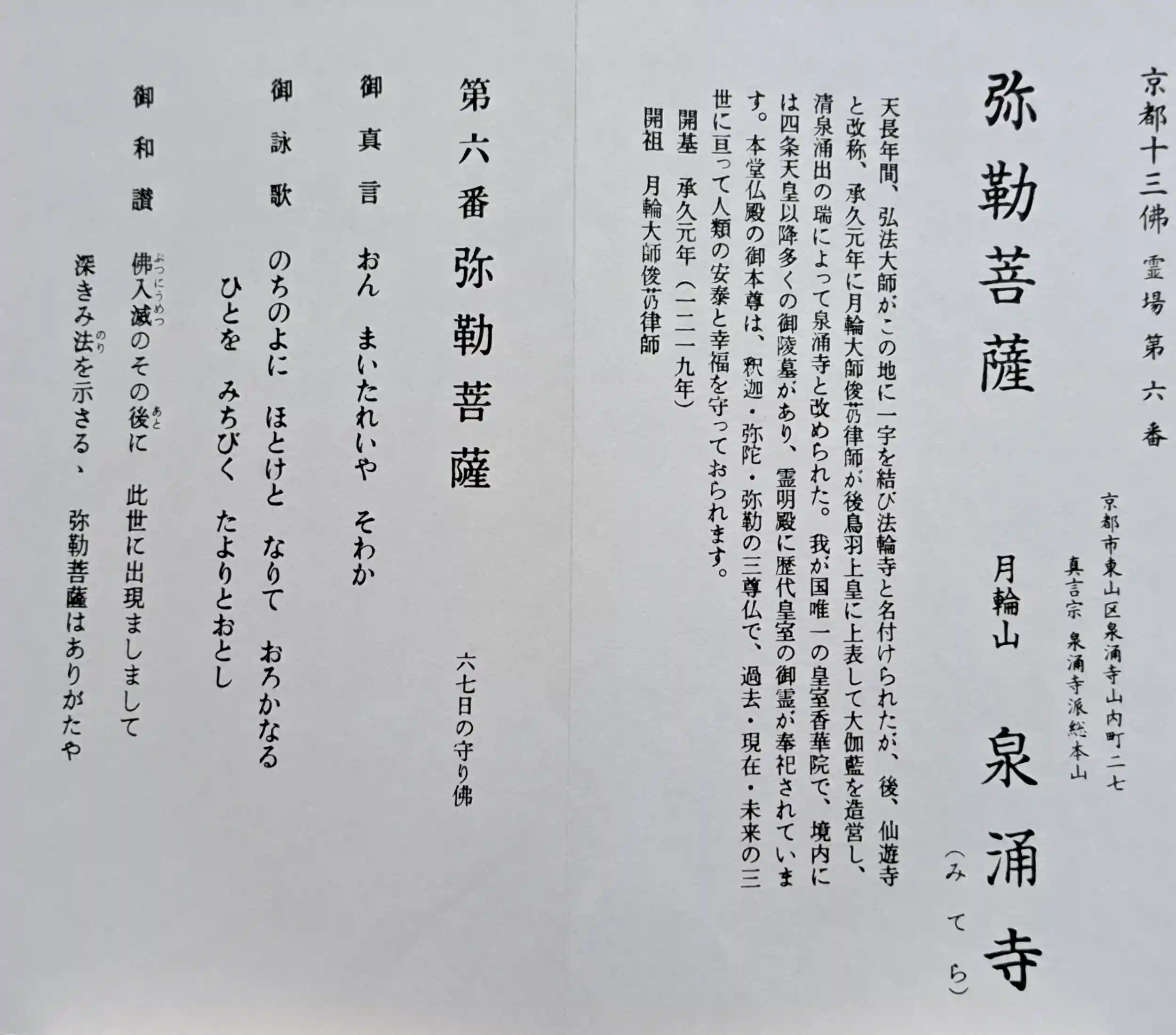 京都十三佛霊場第六番の御朱印を頂きました