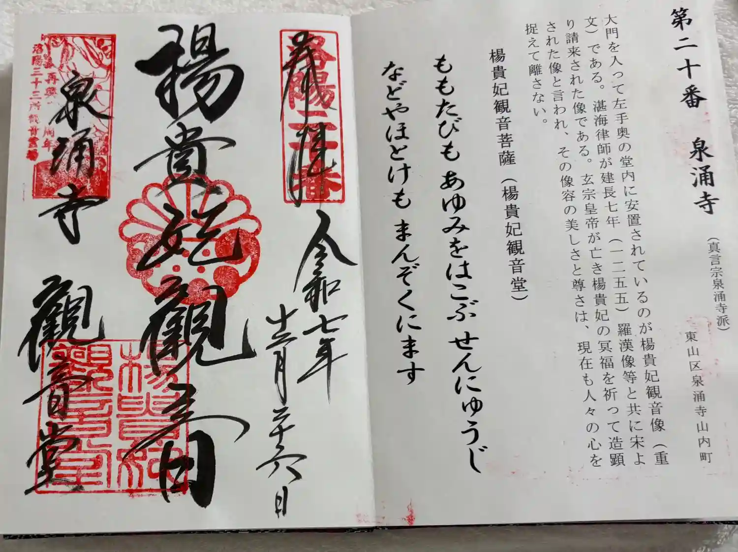 こちら楊貴妃観音堂さんの御朱印(直書き)は泉涌寺本坊にて頂きました🙏