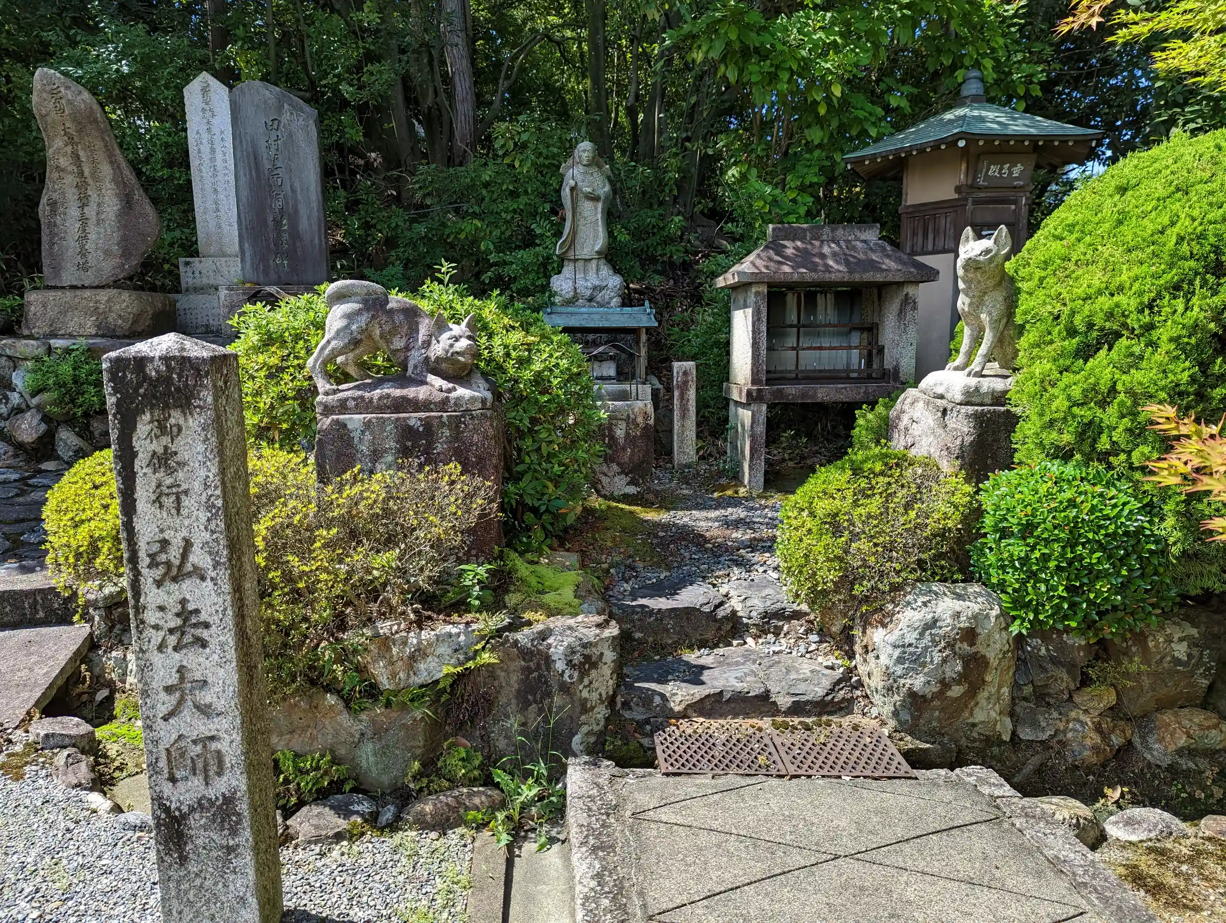 観音霊場巡り寄り道兼阿弥陀如来巡り。那須与一の墓とオーケストラ仏像と言われる阿弥陀如来並びに二十五菩薩像ある寺で有名🤗弘法大師像前の狛犬がリアル犬の像なのがまた斬新😅