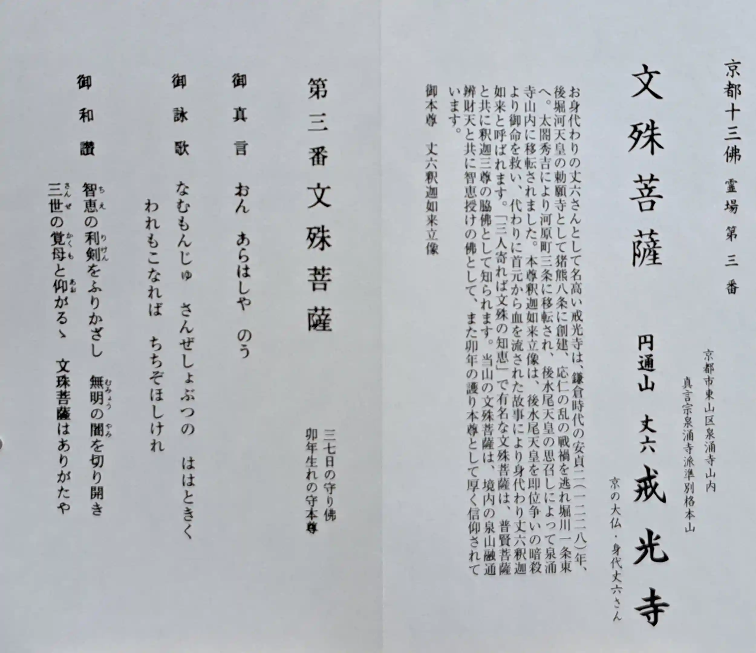 京都十三佛霊所第三番の御朱印を頂きました