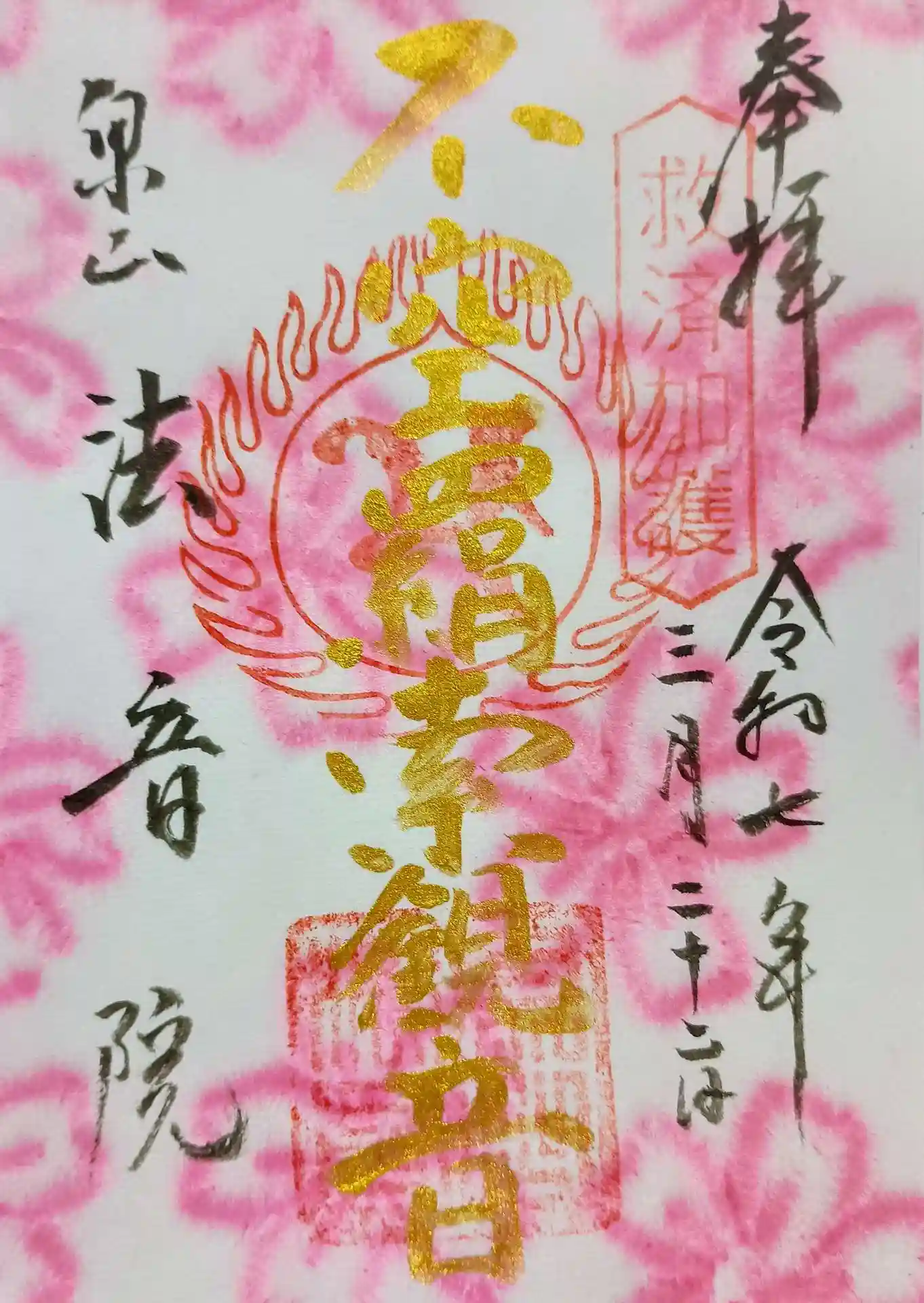 昨年は明王の御朱印(五大明王・孔雀明王・愛染明王)を、今年は七観音の御朱印(千手、馬頭、十一面、聖、如意輪、准胝、不空羂索)を揃えたくなり、探してもなかなかなかった不空羂索観音の御朱印が法音院にあることがわかりお参りしました。法音院の御本尊の不空羂索観音様の春の書置き御朱印をいただくことができました。