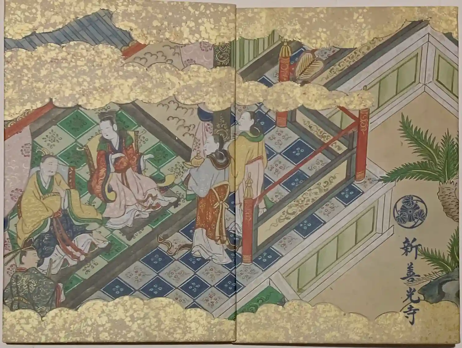 新善光寺の御朱印帳を見開いた部分にも二頁のみ絵柄がありました。