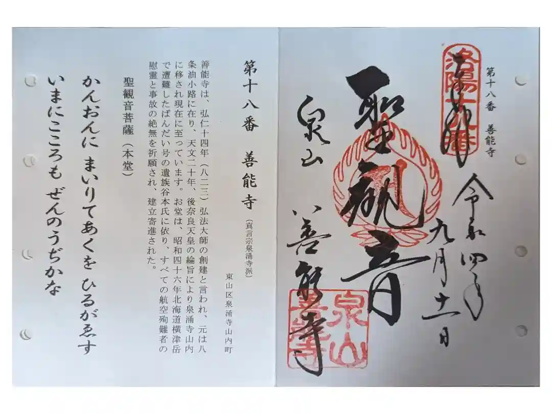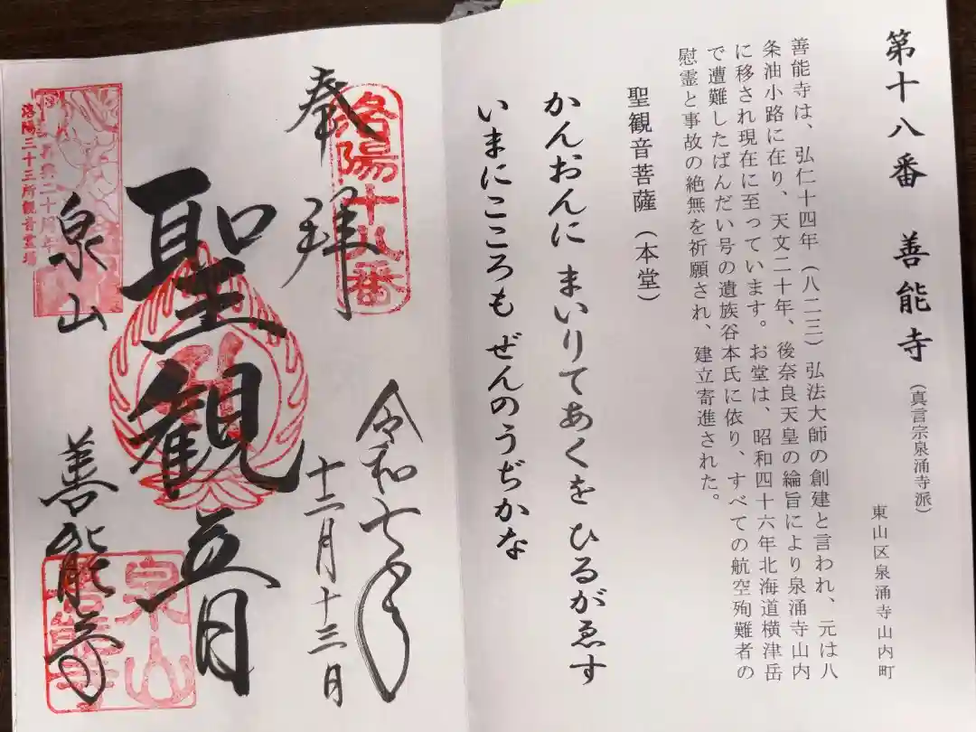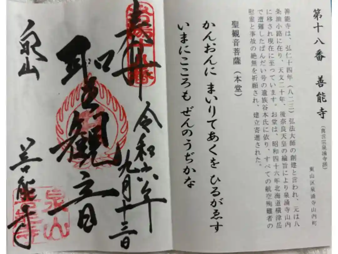 善能寺 洛陽三十三所観音霊場。御朱印は泉涌寺(御寺)でいただきました。