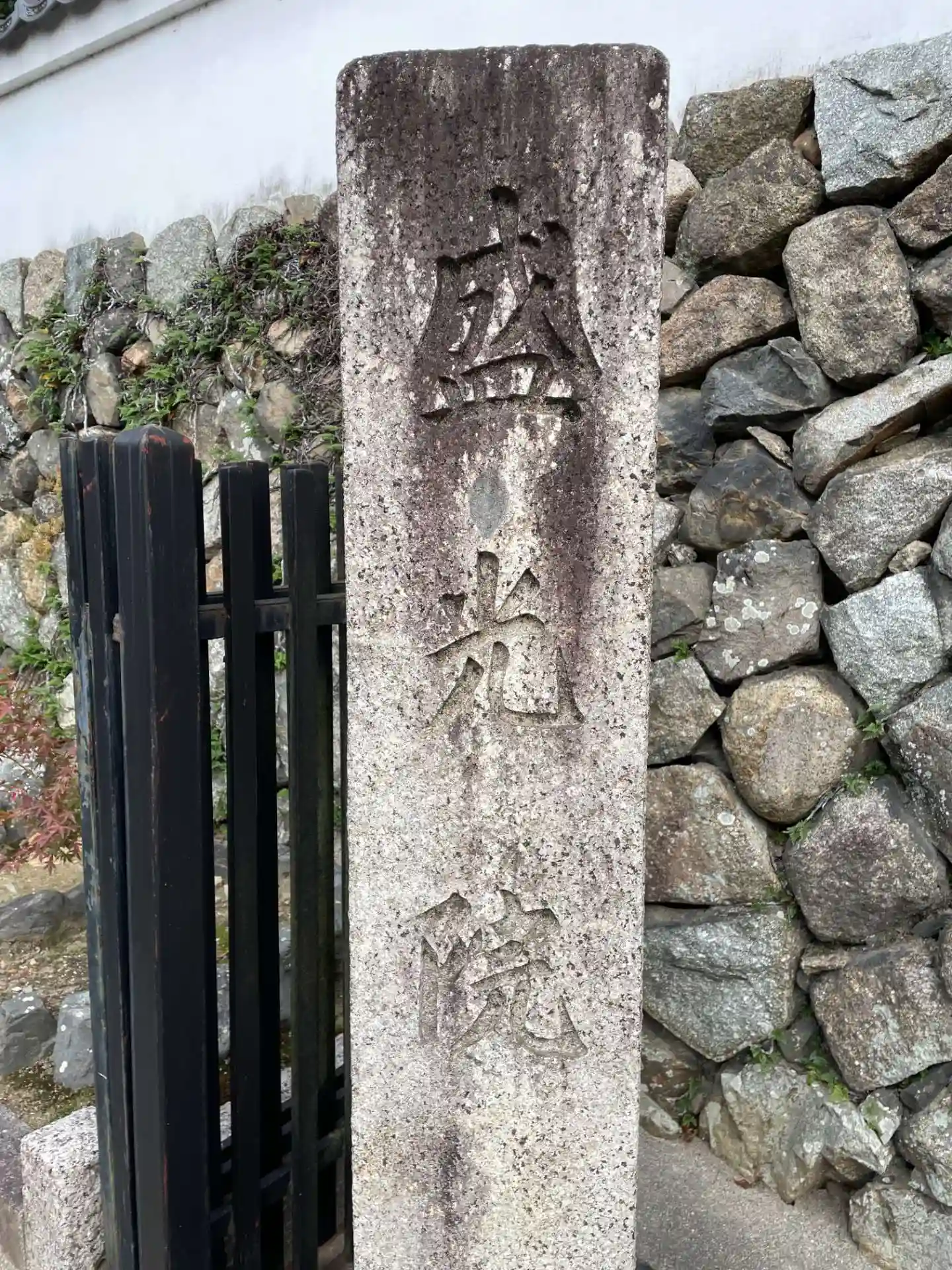 退耕庵を目指して歩いていたところ 混雑緩和のために頑張っておられる警備員さんの背後に石柱を見つけ 山門に向かおうとしたところ どうしても入れそうにない雰囲気で山門に行くのも諦めました。