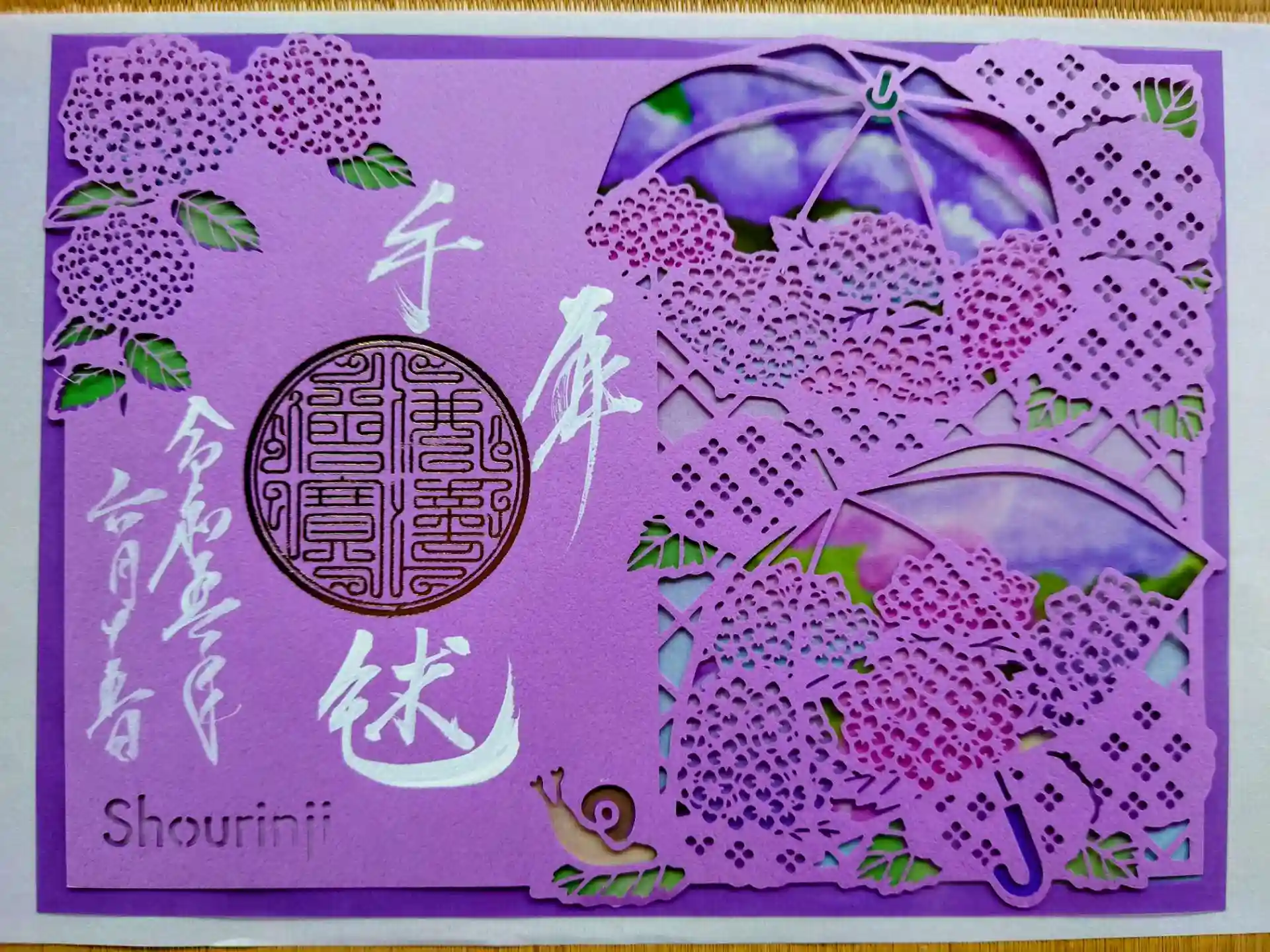 ステンドグラス風切り絵御朱印 「紫陽花」