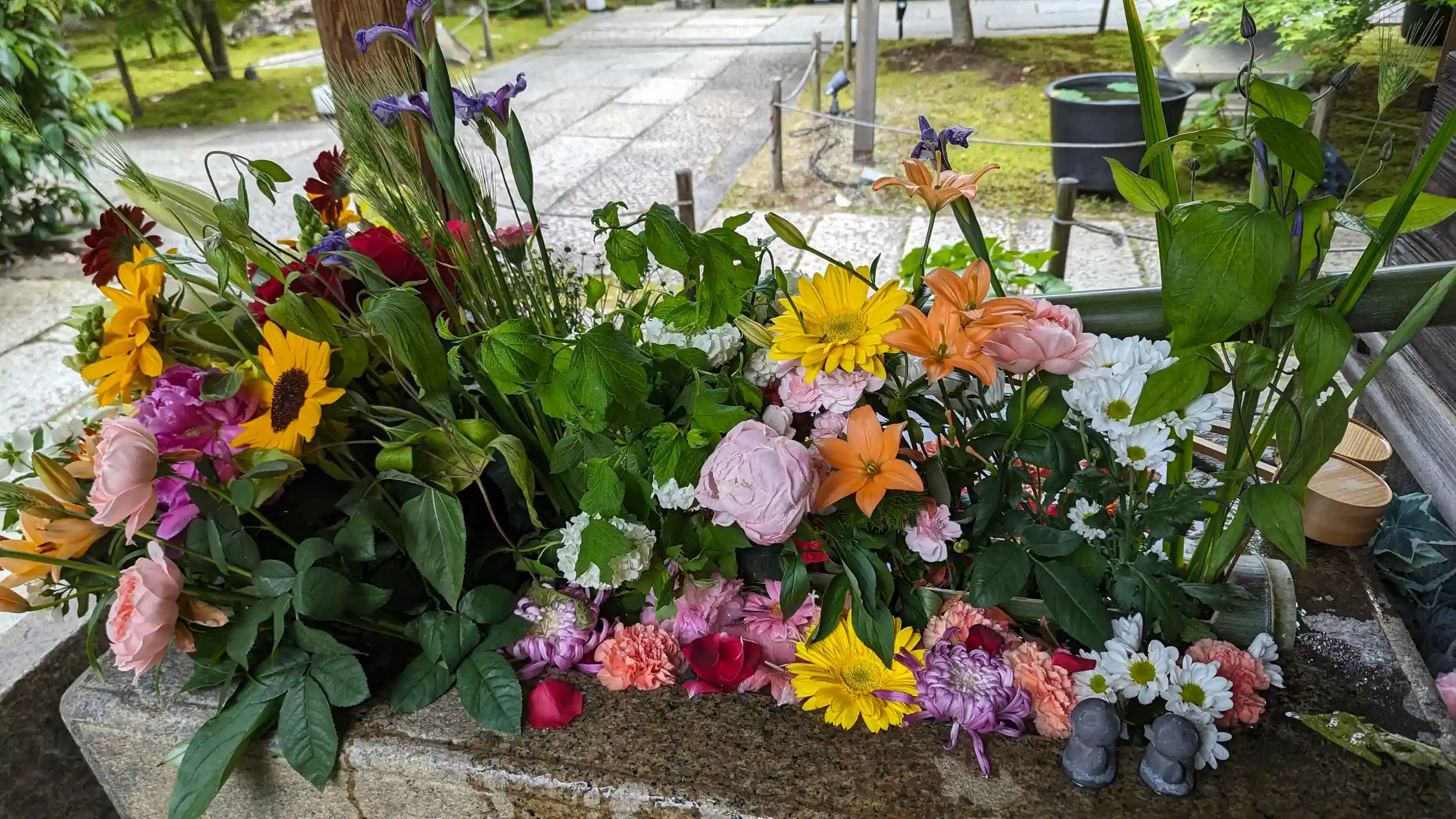 直書き御朱印の「藤と蝶」を拝受に😊花手水には早くもひまわり?かな😅いつの間にやら睡蓮も咲いておりました🤗御朱印の藤は右下の方は藤が逆さに押されていて一瞬「ん?」と思いましたが水面もあり、水に映ったリフレクションを表現したなんとも粋な演出がされておりました。また上り藤は先日伺った藤宮神社の神紋ですので(藤森祭の神輿は東福寺郷まで周る)、そこまで考慮されてたらすごいなぁと思いましたが考えすぎ?🤣それにしても今月も御朱印多いから迷う・・・😂