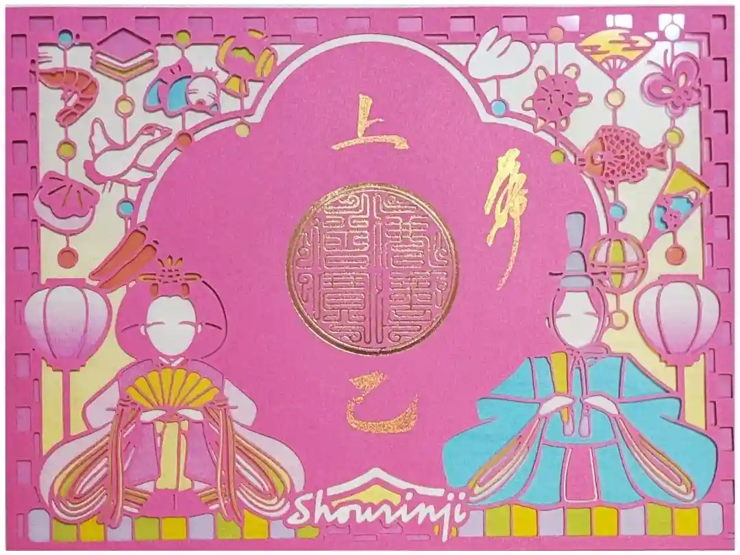 表面に毘沙門天像のシルエットが描かれ、その下に「Shourinji」「Zen Temple」と英語表記されています。