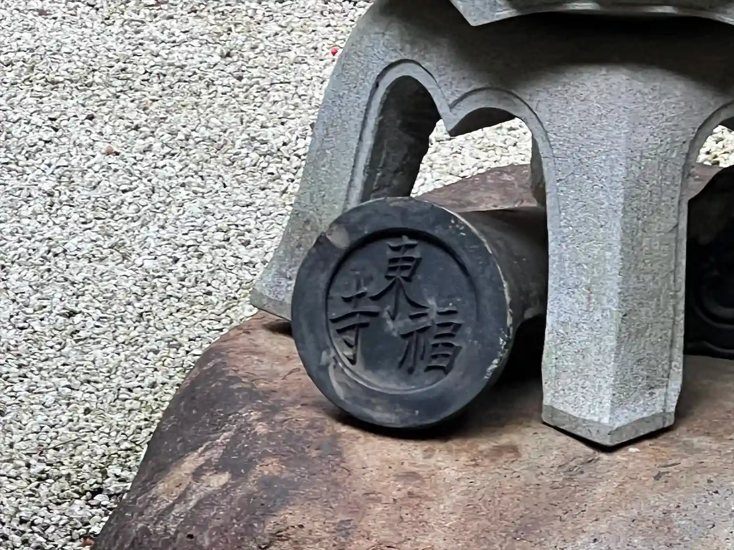 須弥壇と石船を据えた細川家が寄贈した「遺愛石」です。