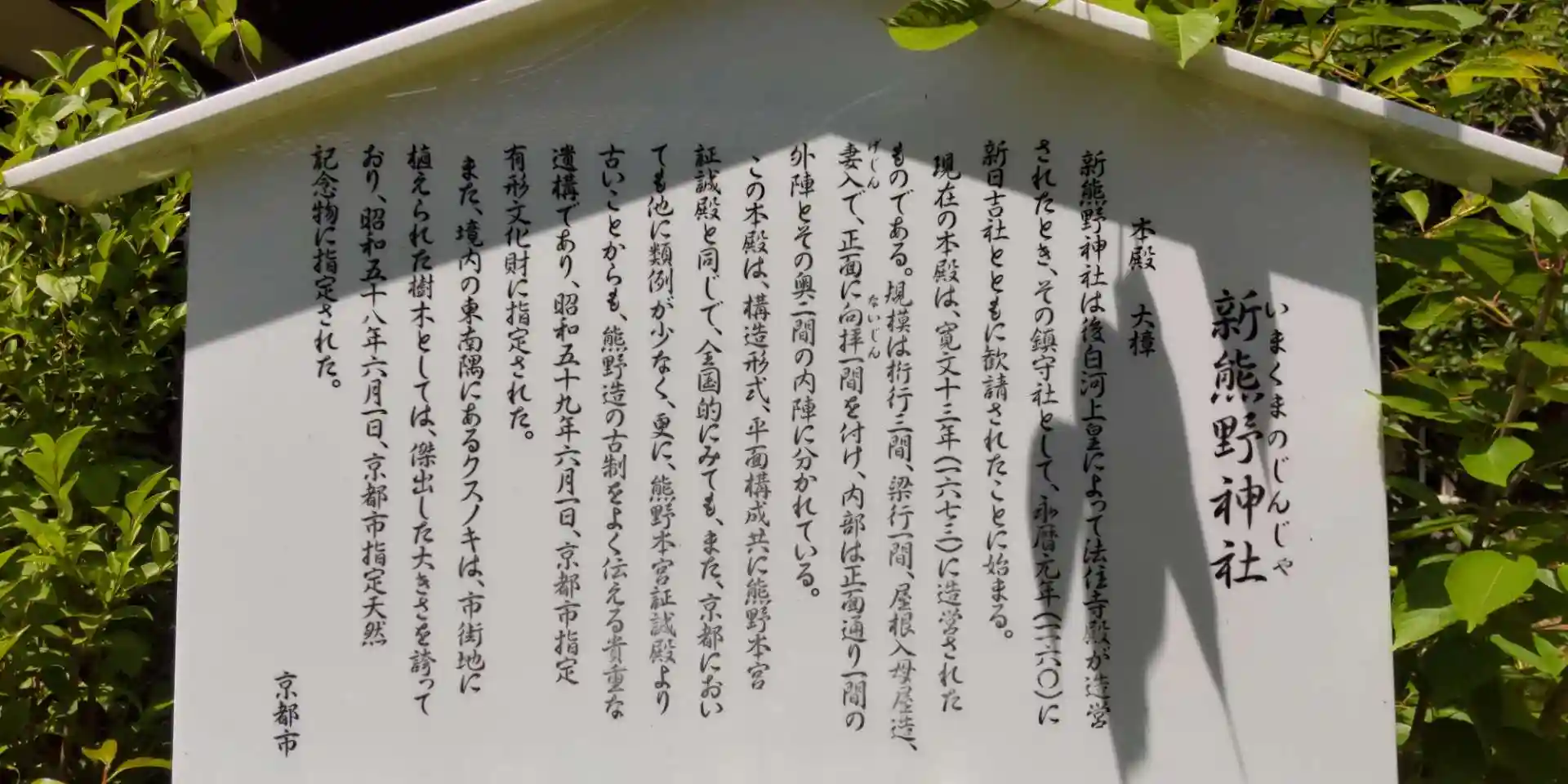 こちらは後白河法皇によって創建された神社です。院政後の鎮守の神社として創建されたとのこと。京都十六社の一社にもなります。楠木が大きく太くとても立派でした!