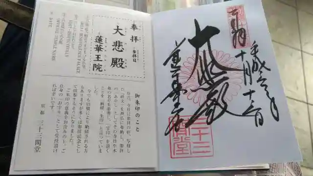 蓮華王院(三十三間堂)では、大悲殿の御朱印をいただけます。