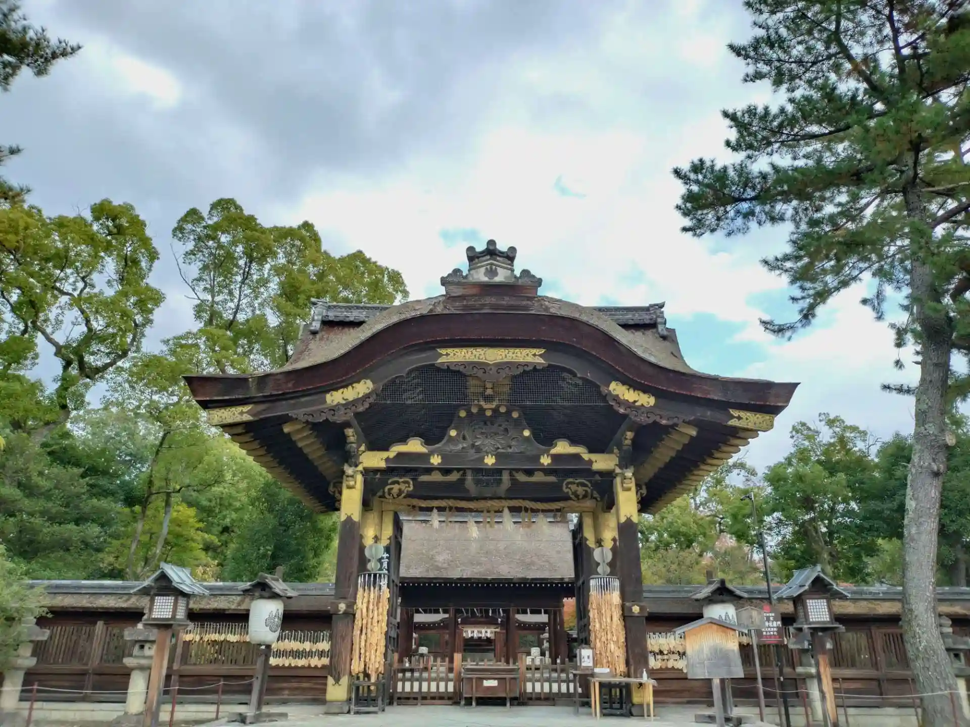 神社正面には伝伏見城遺構の国宝の唐門が、飛地境内の阿弥陀ヶ峯には秀吉公の墓所豊国廟もあります。