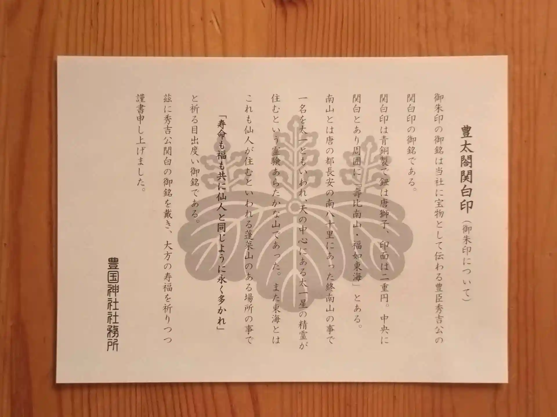 御朱印には『壽比南山 福如東海』の言葉も書かれ、『寿命も福も共に仙人と同じように永く多かれ』という意味だそうです。