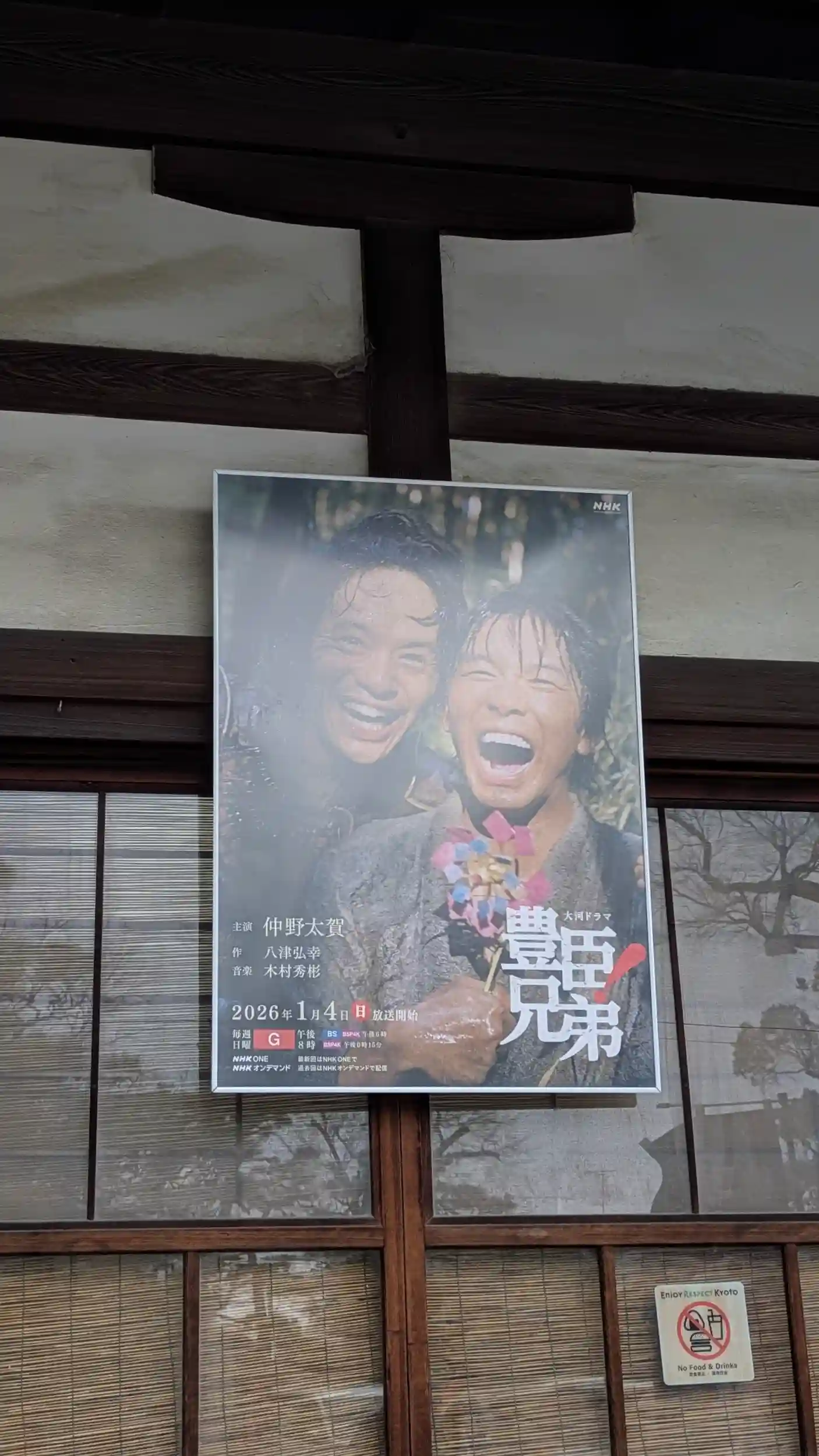 市比賣神社から徒歩で豊国神社へ。京都十六社六社目。これで徒歩10㎞オーバー😅本殿は今年も唐門が開けられており、本殿前でのお詣りが可能に😊昨年は貞照神社百年祭でしたが今年は大河ドラマの関係かな?本殿前には列もできており、待っている間に雪がちらちらしてまいりました😂お詣りして社務所へ。大河ドラマのポスターも飾られており、昨年は智積院、今年は豊国神社ですね😊年内に大河ドラマの御朱印が出るか気になるところです。