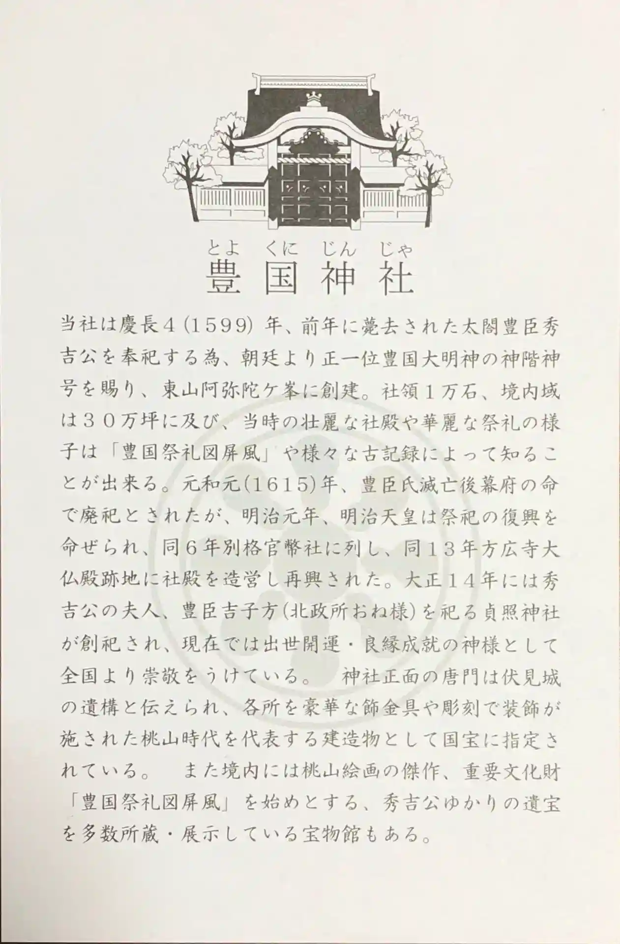 豊臣秀吉公が御祭神の豊国神社。