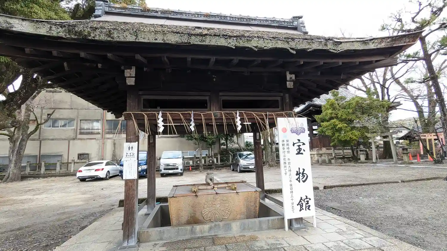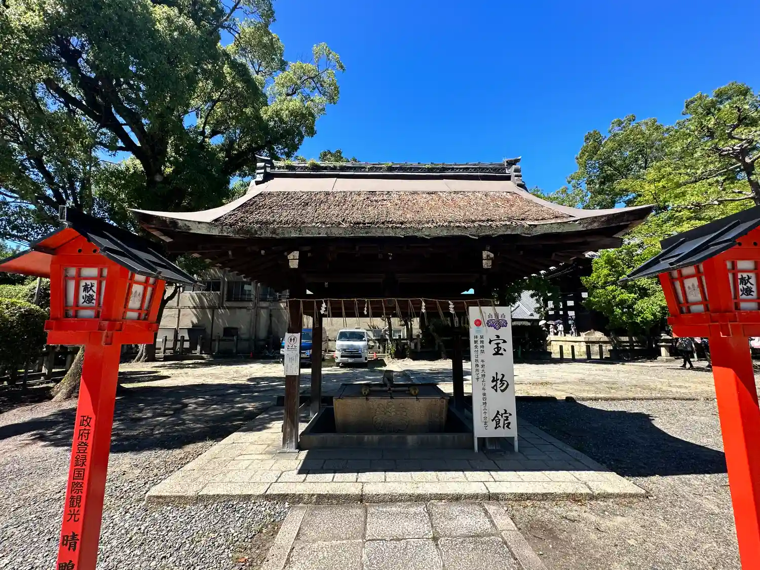お隣で刀剣展やってる都合なのか、まだ7時前なのに社務所の…