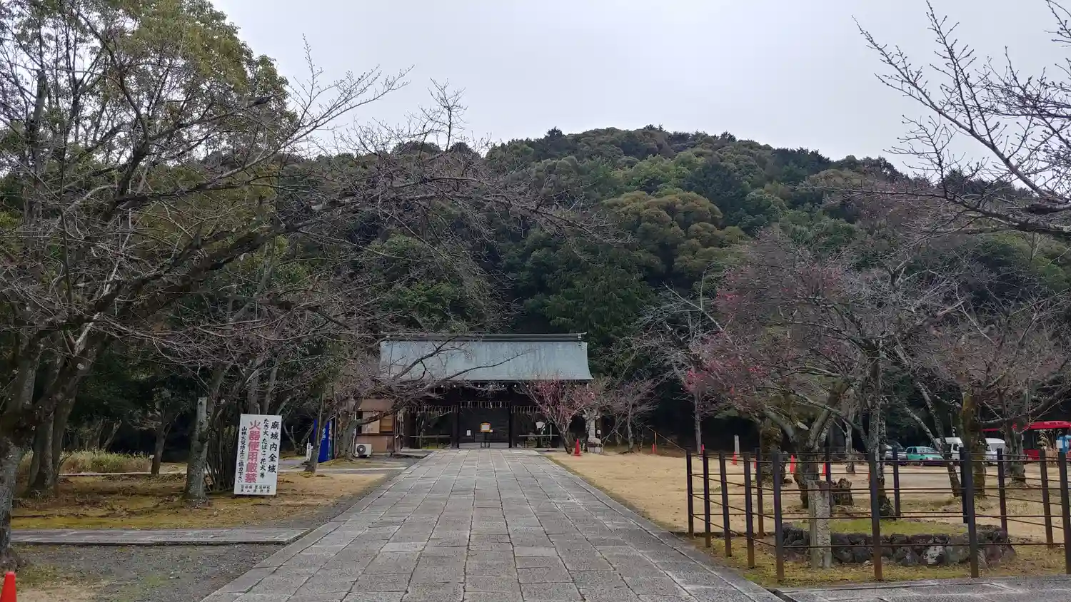 豊国神社の社殿前に立つ、たった1本の桜の木。