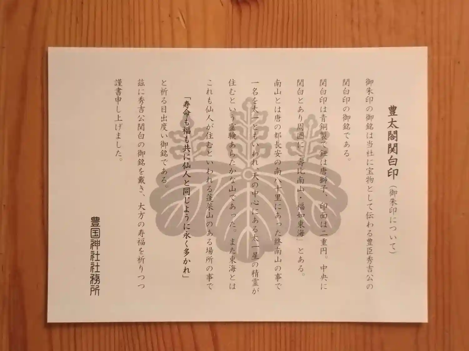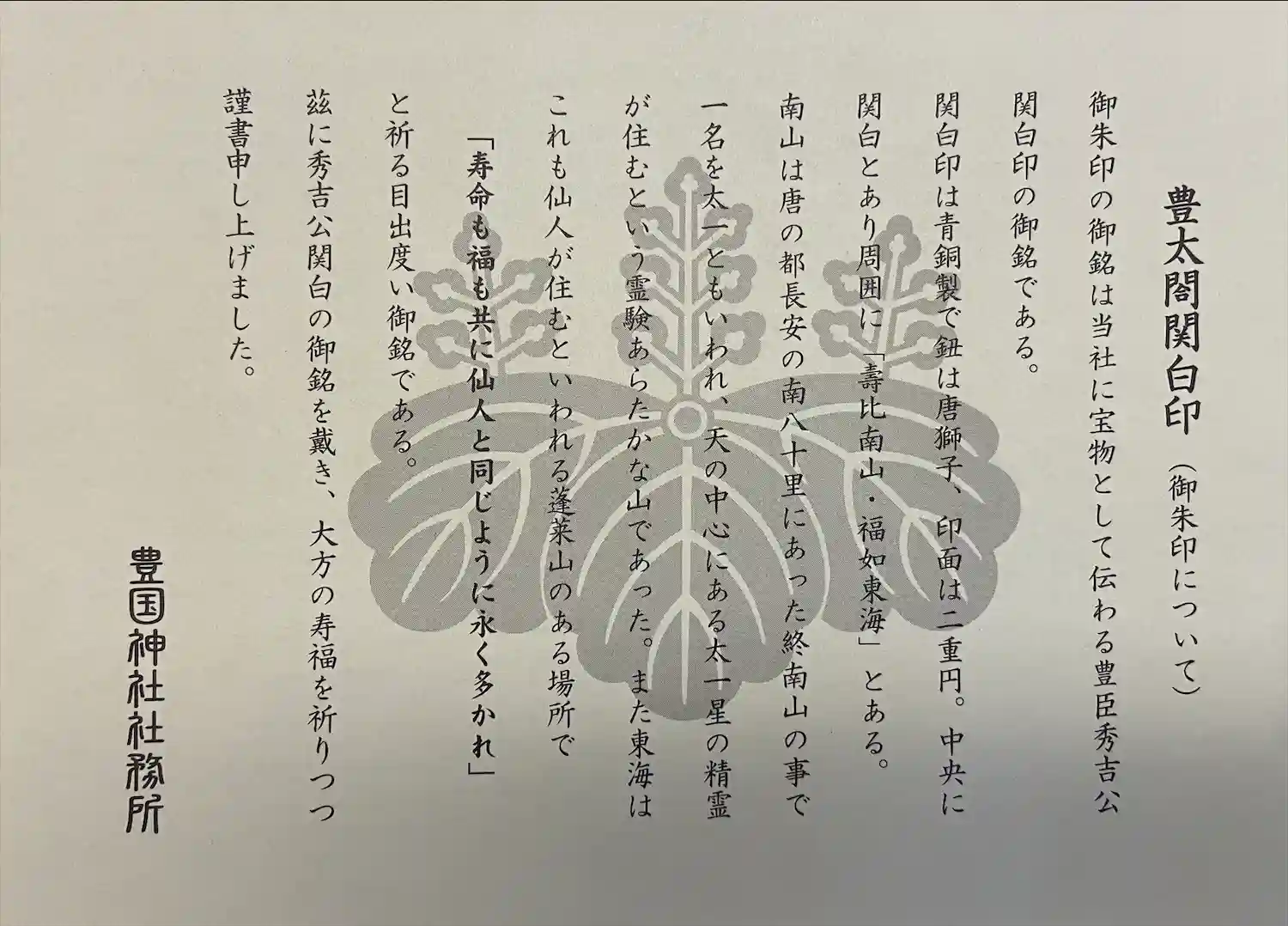 豊太閤関白印