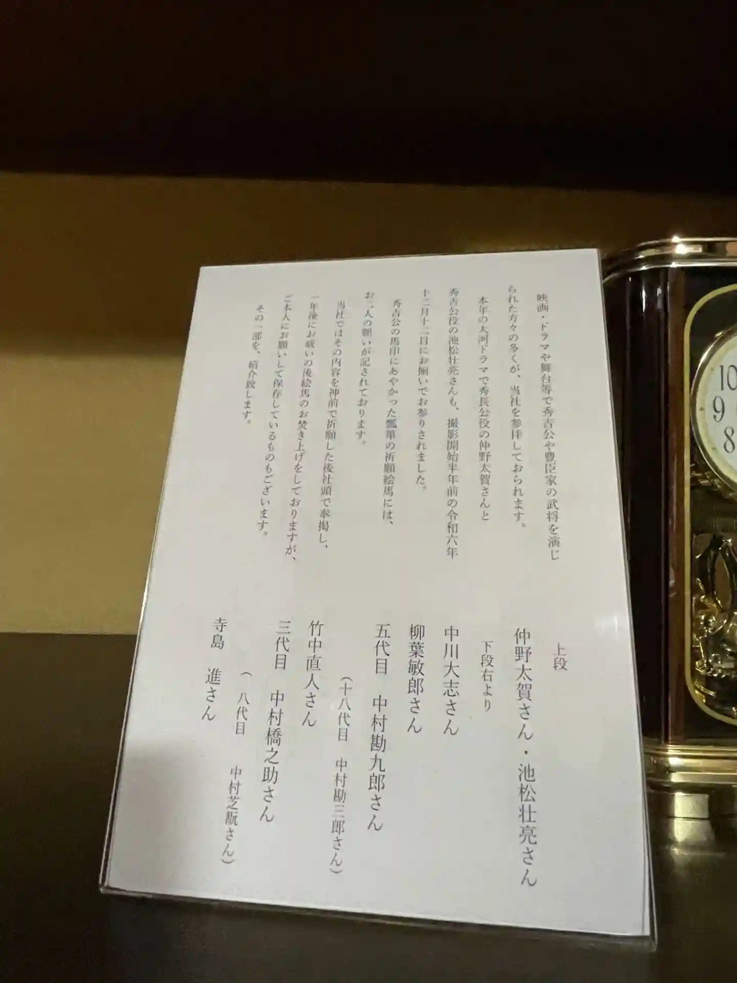 説明 奉納した俳優さんの名がありました