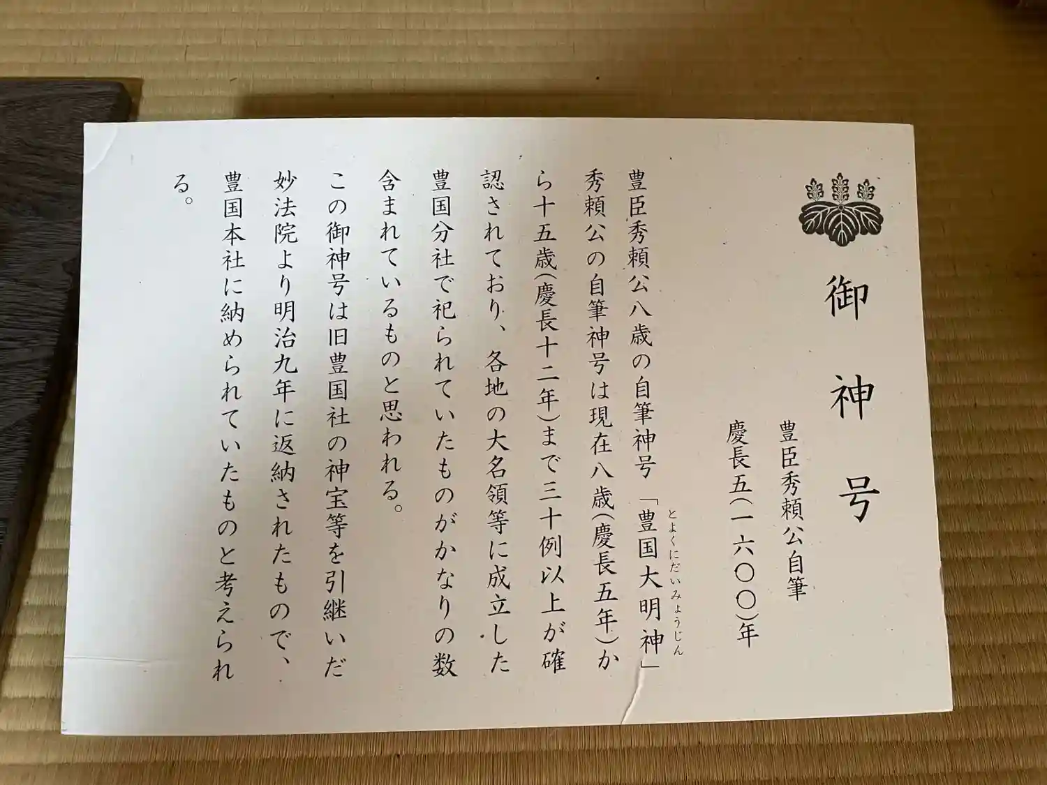 御神号 秀頼公8歳筆