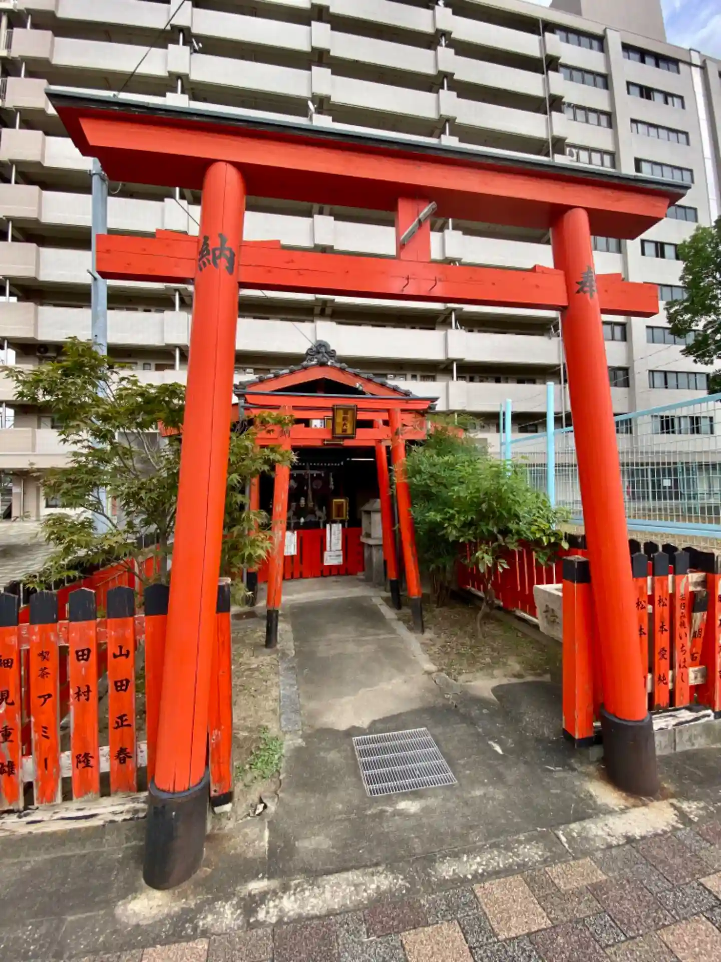 市営住宅の前に鎮座されています。