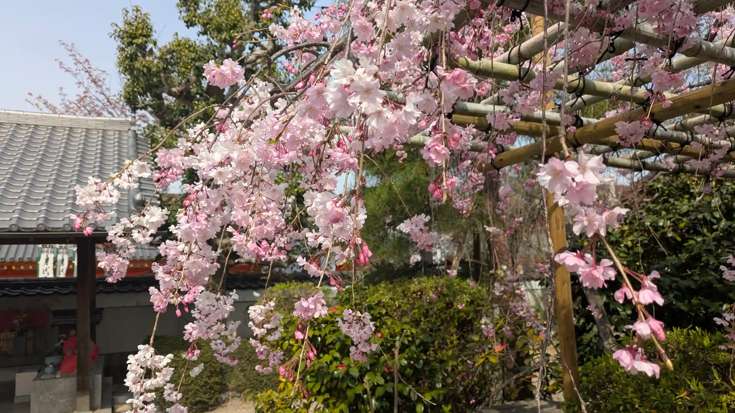 近くの法住寺へ。花まつり御朱印の最終日だったので混んでるかなぁと思いましたがまさかの貸切状態。平日だったからかなぁ?御朱印お願いしてしばしお不動さんと向かい合ってまいりました🤗本堂前の枝垂れ桜も見頃でした😊
