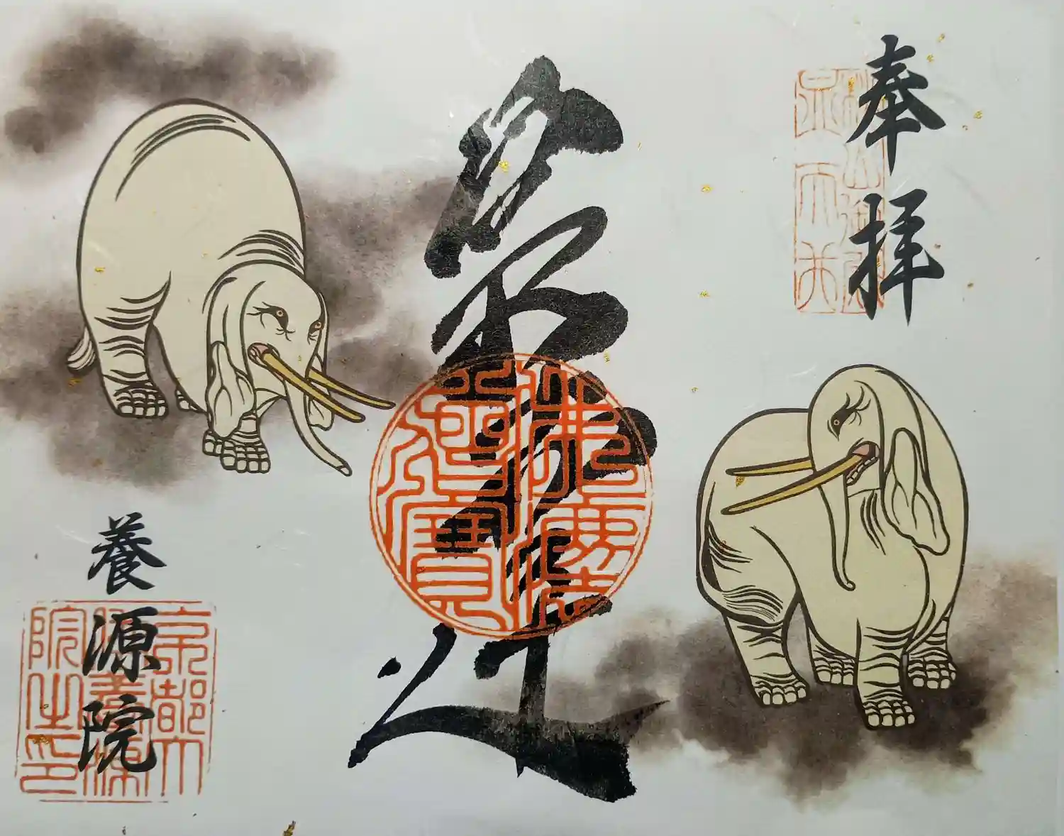 突き当たりの部屋には、俵屋宗達が描いた杉戸絵「白象図」があります。