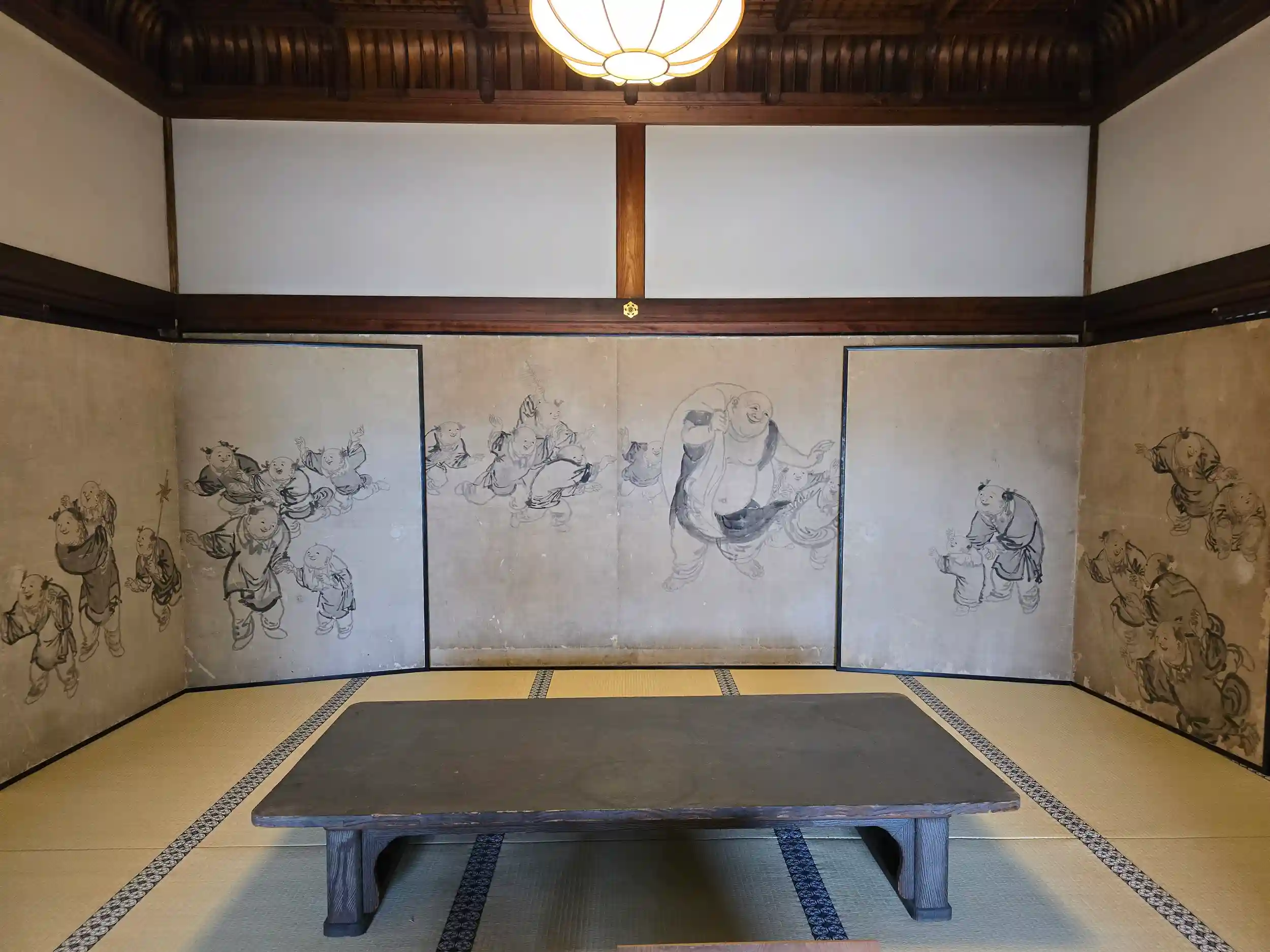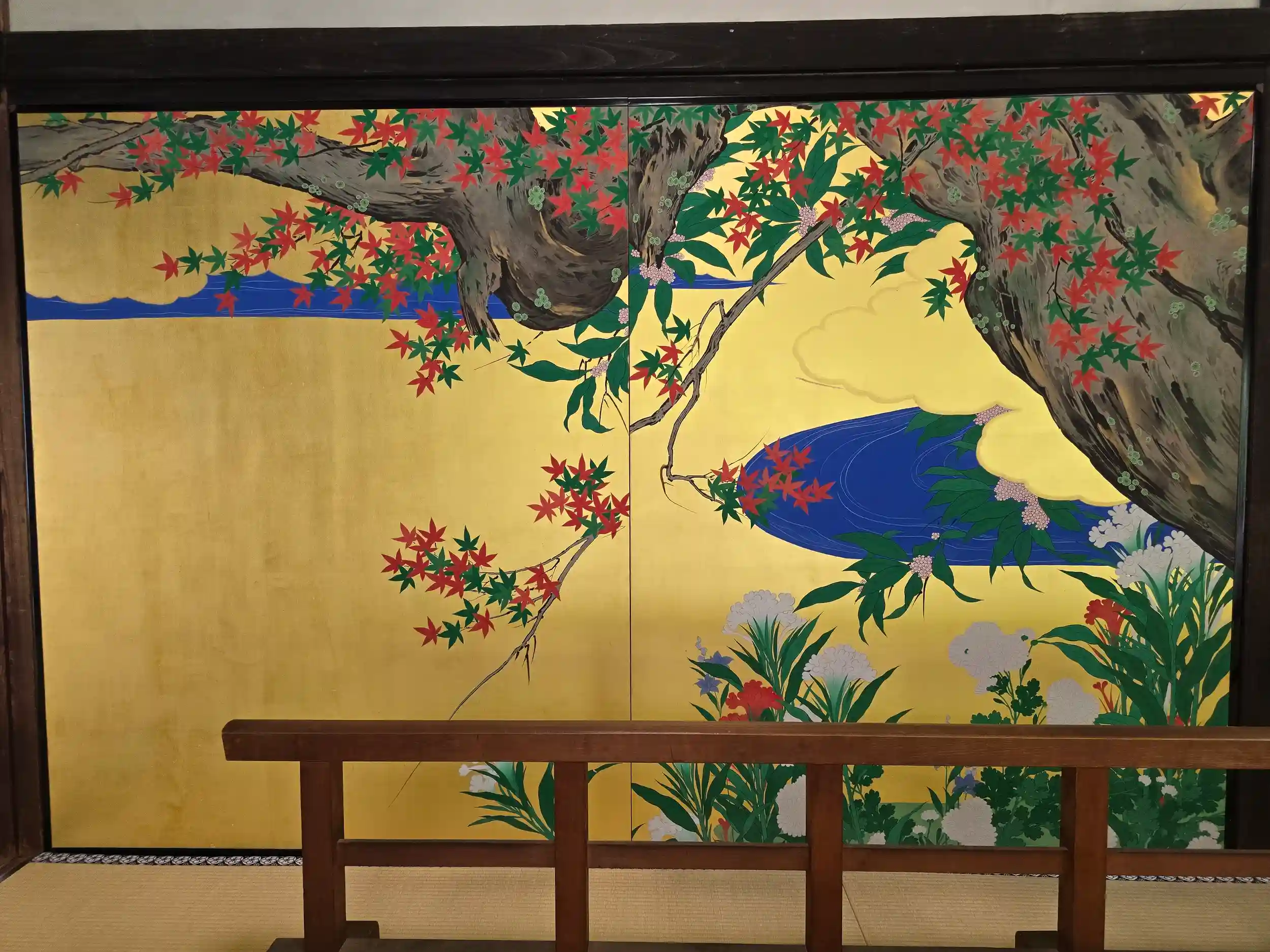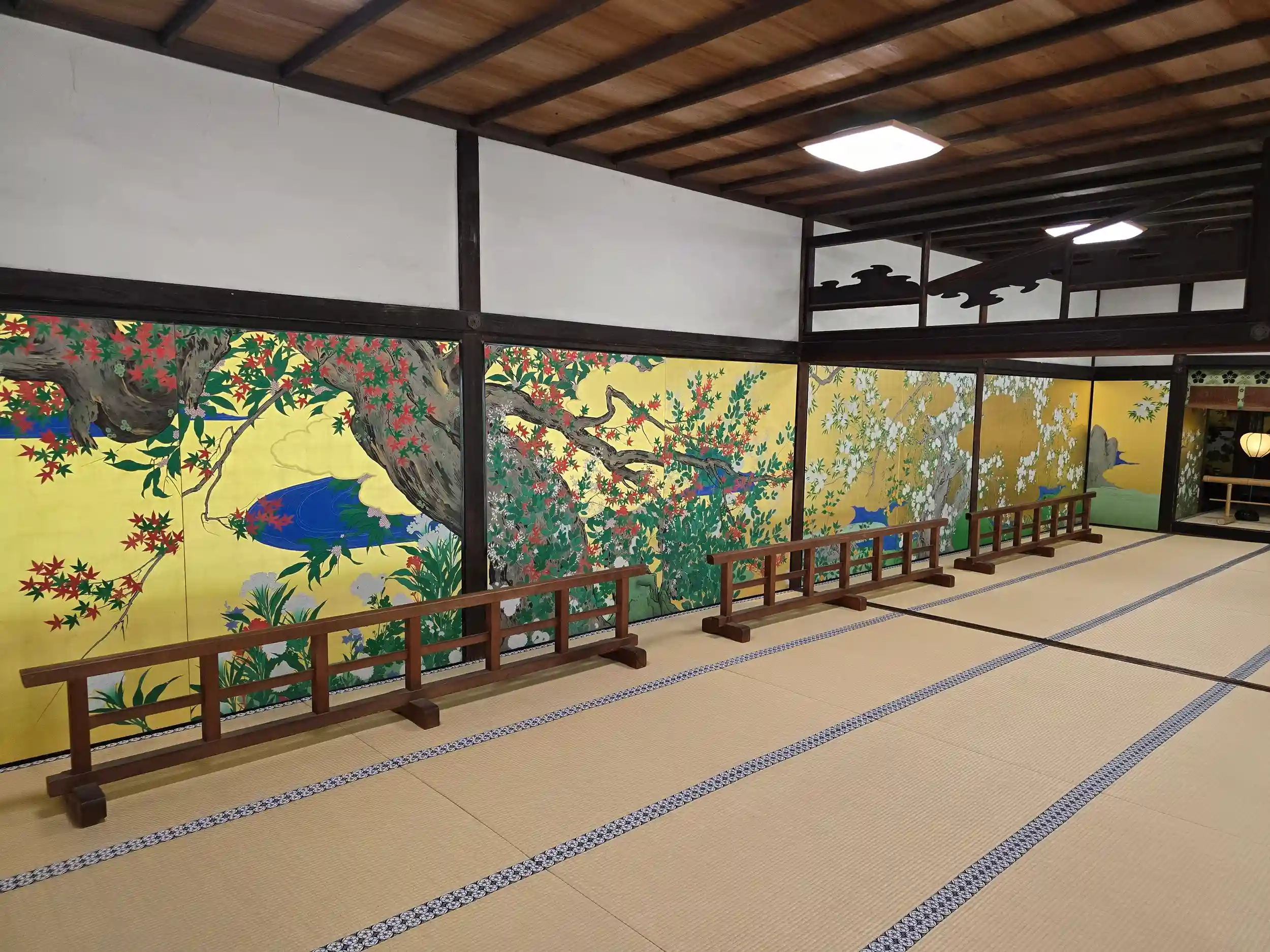 この日は辰殿の襖絵の初公開があり、昭和中期のモダンな絵柄に感嘆し、宝物殿の桜の襖絵(少し離れた所から見ると桜の花が光って浮き上がっているように見えました)に驚嘆させて頂きました。