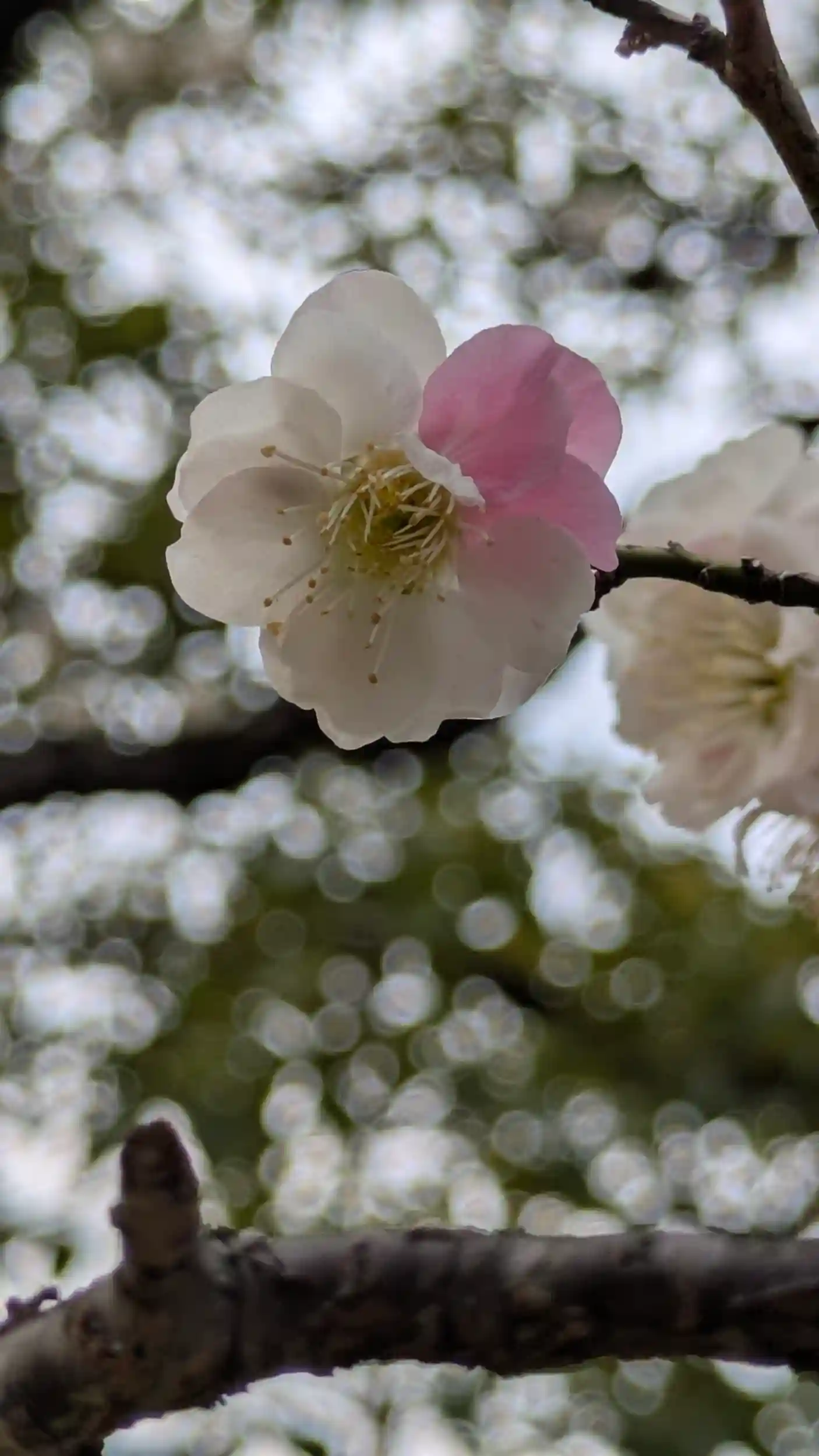 新日吉さんから智積院へ。梅の名所となりつつあり、本堂裏手の墓地回りの梅林が撮影スポットになってきておりカメラを抱えた人が何人か居られました。まあ私のお目当てはそちらではなく不動堂前の「おもいのまま」一本の梅に紅白の花が咲き、運が良ければ一輪の花弁に紅白が混ざった花が見られます。そして今年は・・・ありました😍しかも二つも見ることが出来て感激です🤗