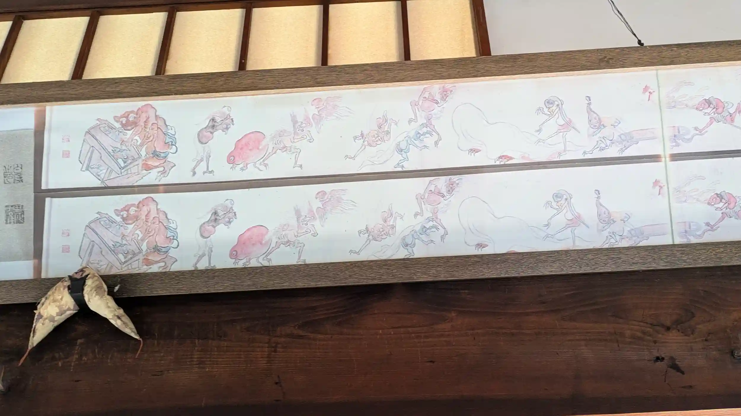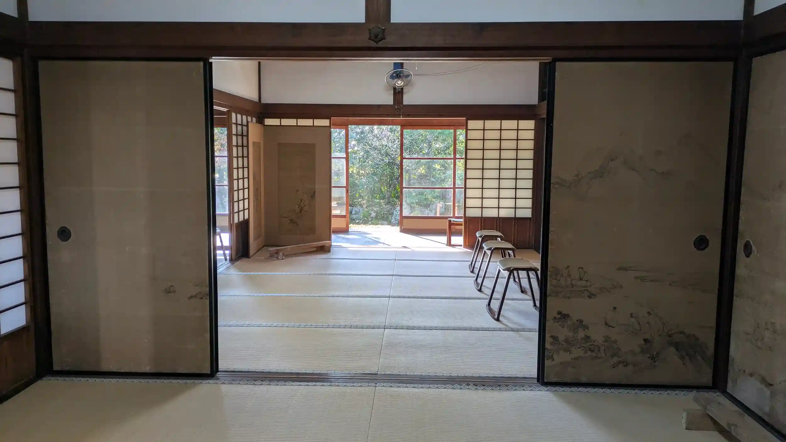 Instagramで特別拝観の情報を見かけたので参拝。最終日ギリギリでした😅臨済宗妙心寺派大本山妙心寺門外塔頭。御本尊は釈迦三尊。ちょうど10時から簡易ながら法要があるとのことで法要見学後拝観。客殿が四室あり、障壁画は狩野永岳作と考えられるとのこと。また白隠禅師筆の「法具變(変)妖之図(複製)」が展示されており、法具や楽器が粗末に扱われて妖怪になったものが描かれており、仏法を疎かにしないよう戒めとして描かれたとのことです。