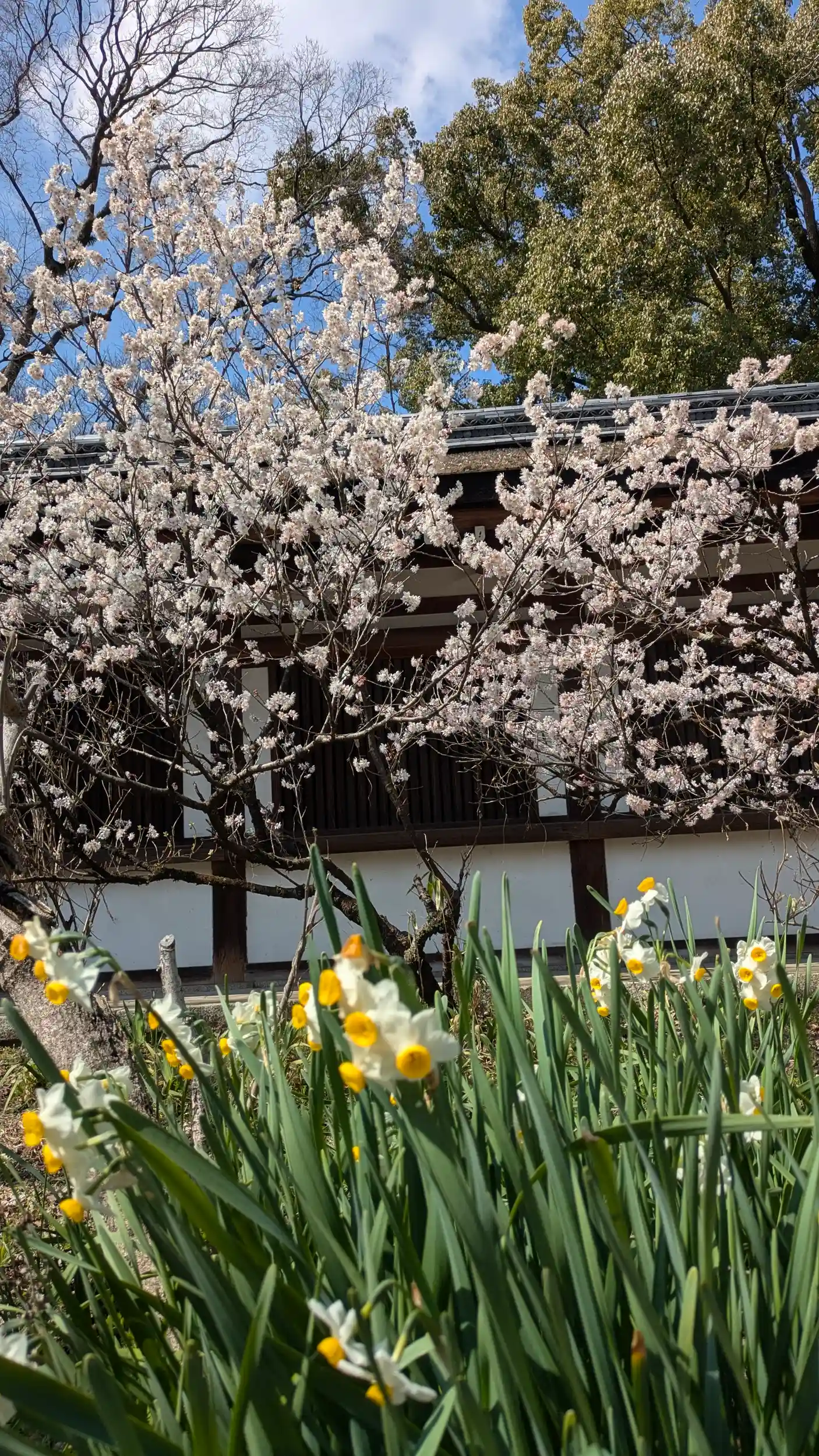 北野さんへ向かっていたら平野神社についてしまったのでお参り😅鳥居横と稲荷社の前の桜が見ごろを迎えておりました🤗水仙もまだまだ現役。神門前、春告げの「魁」はまだでしたが今週末から気温が上がるので一気に咲きだすかもですね😊