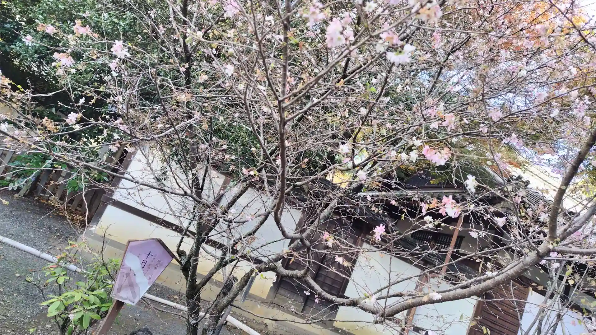 春には桜で有名な神社ですが、秋に咲く桜も咲いてる。