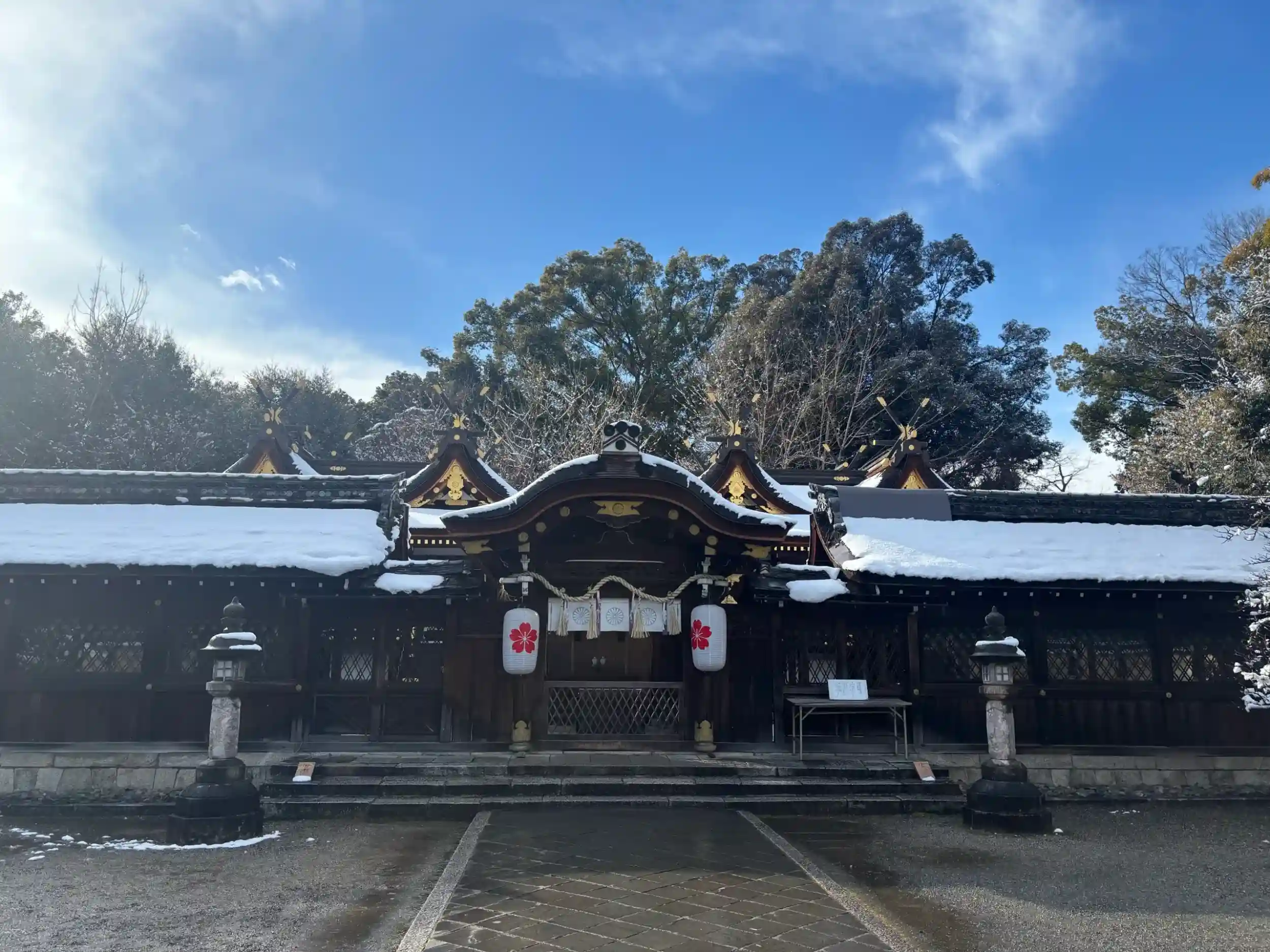 雪が降っていて風も強く、かなり寒かったですが❄️、真っ白に染まった境内は美しかったです✨