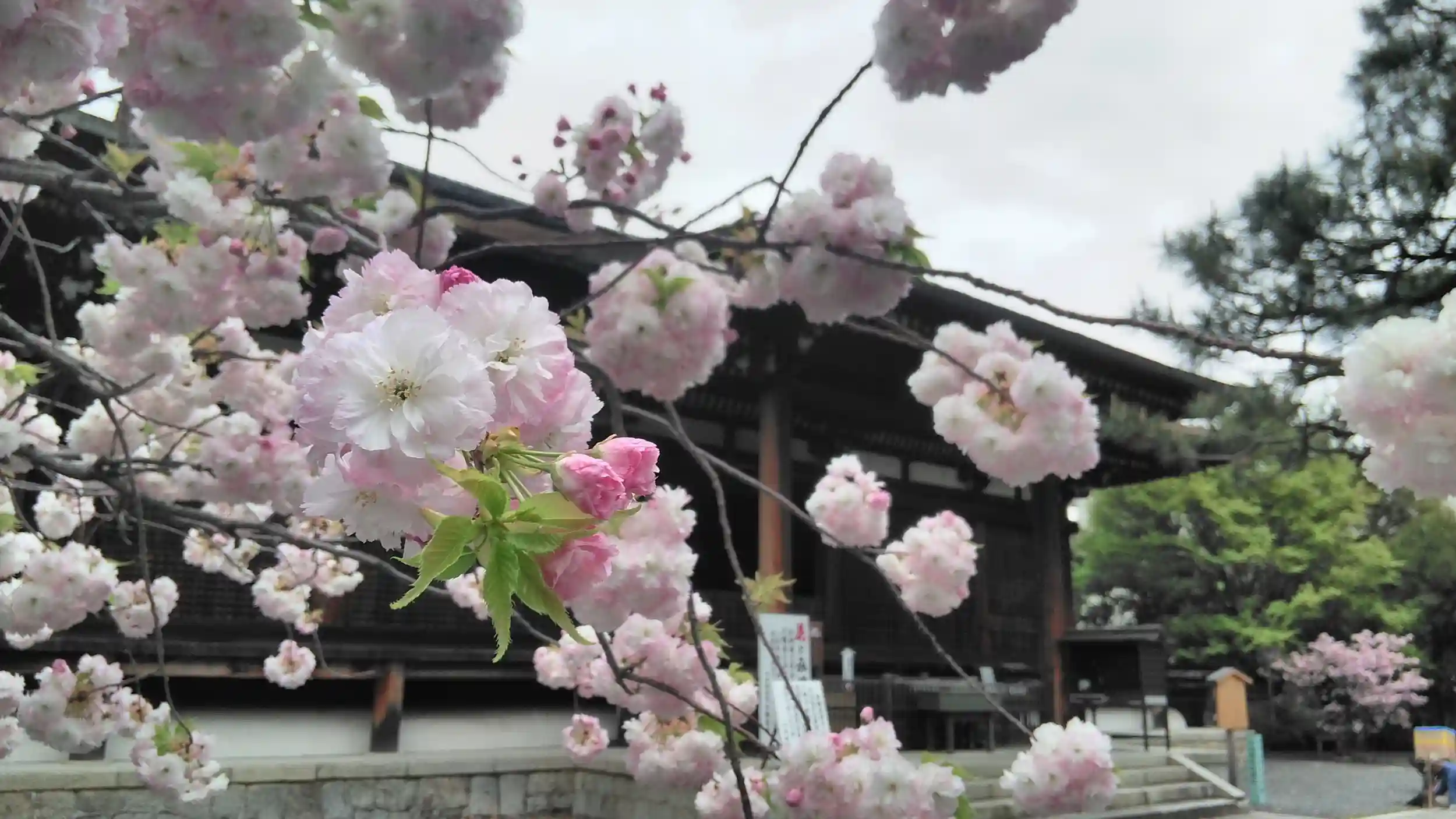 遅咲きの桜たちで賑わう千本釈迦堂。