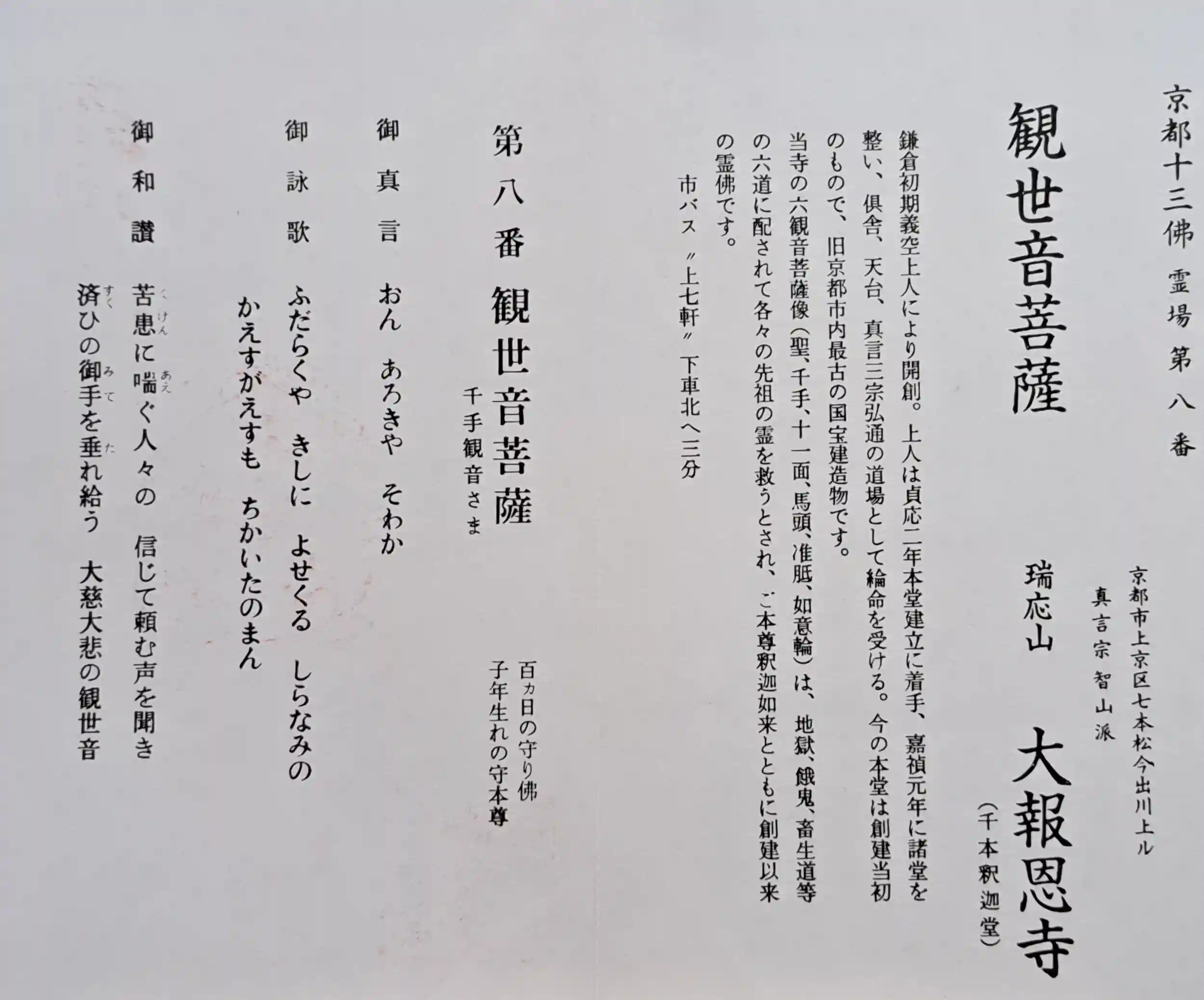 京都十三佛霊場第八番の御朱印