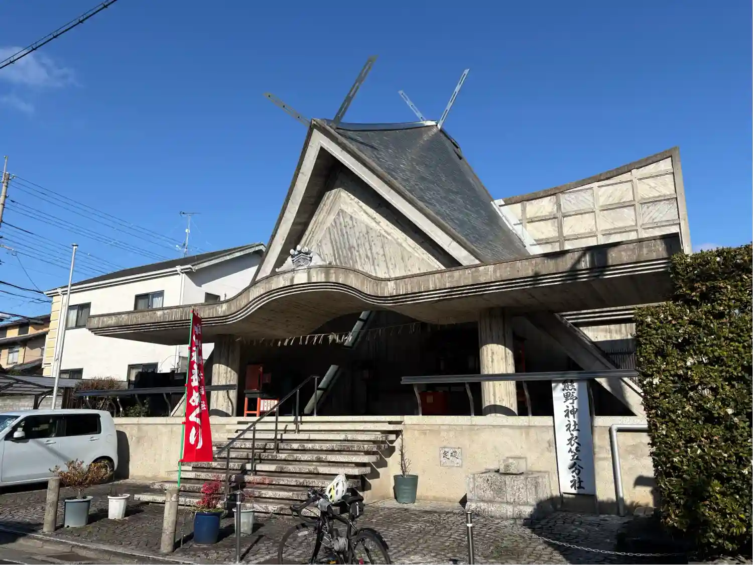 まぁ屋根は よくよく見ると神社のそれと分かりましたが。近代的な社殿ということです。