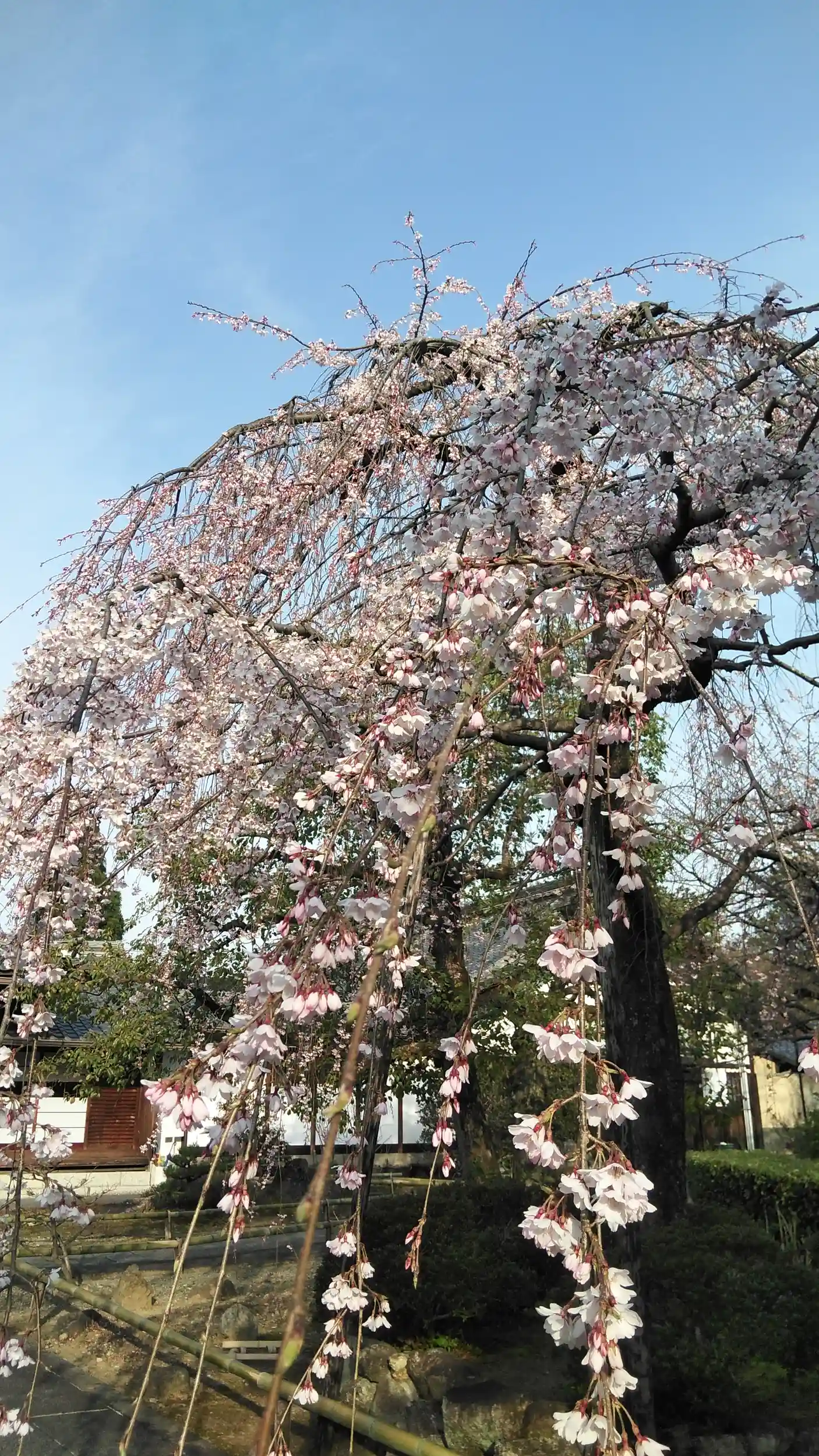 ここの門前に咲く早咲きの枝垂桜。
