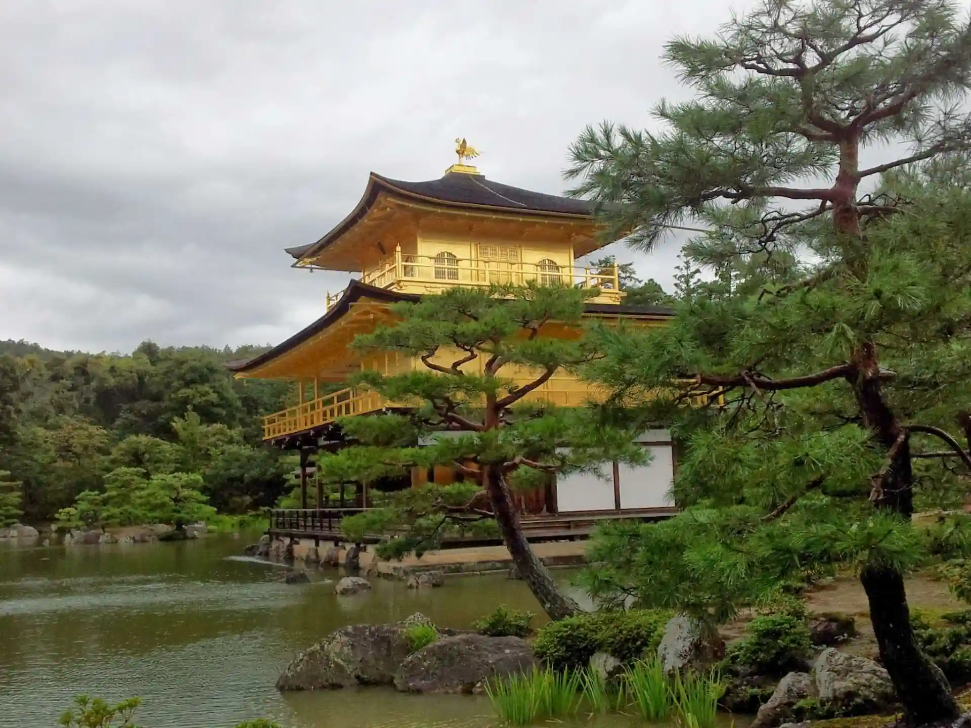 超有名な金閣寺!強い雨が降ってましたが、雨合羽を着た外国人が多かったです。