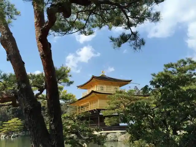 京都の定番観光スポット。足利義満さんが建てた、金ピカのお寺。池に映っているのが綺麗です。拝観料を支…