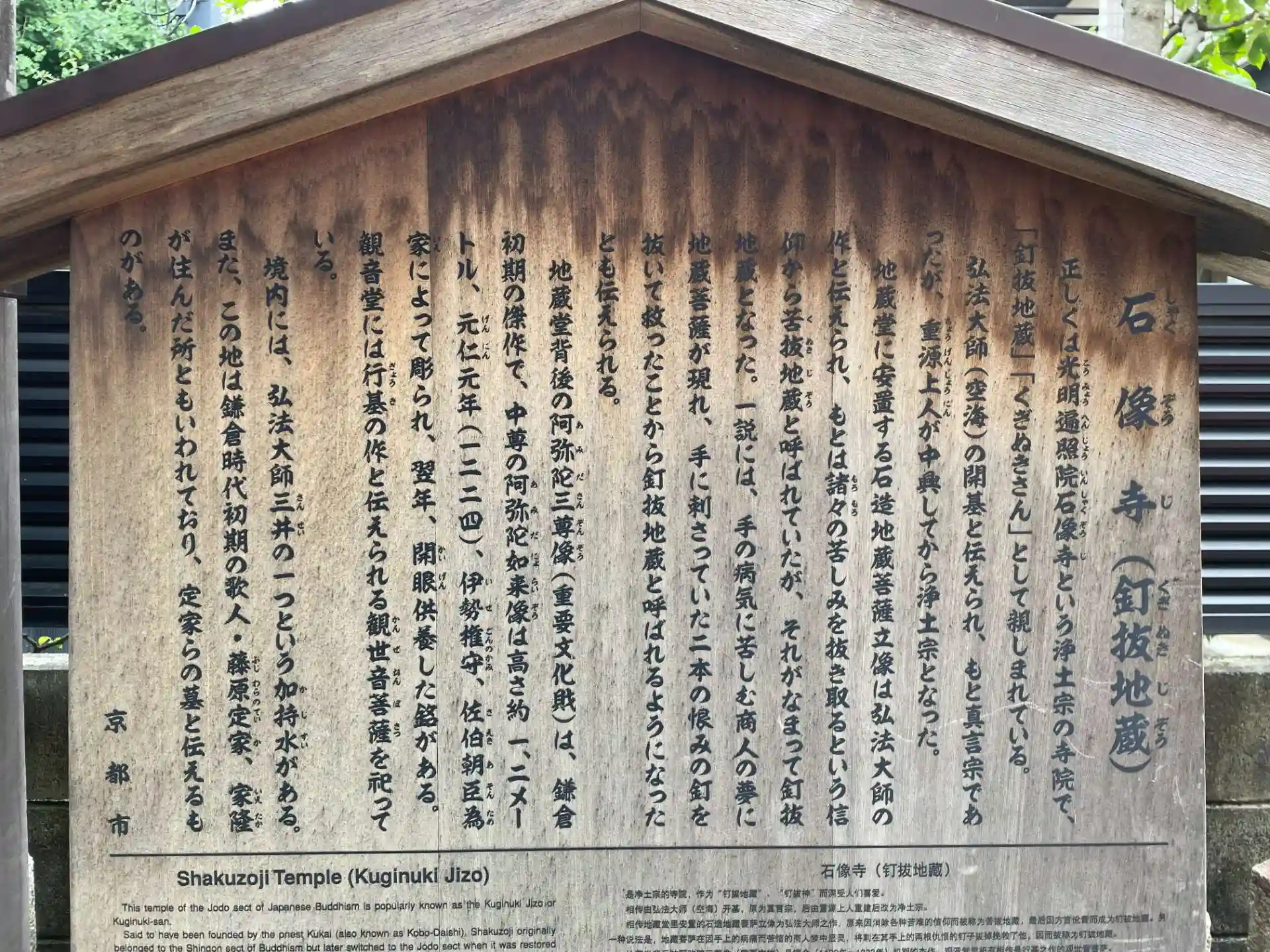 この地蔵は苦しみを抜き取るということから苦抜(くぬき)地蔵と呼ばれ それがなまって室町時代には釘抜地蔵と呼ばれるようになった。