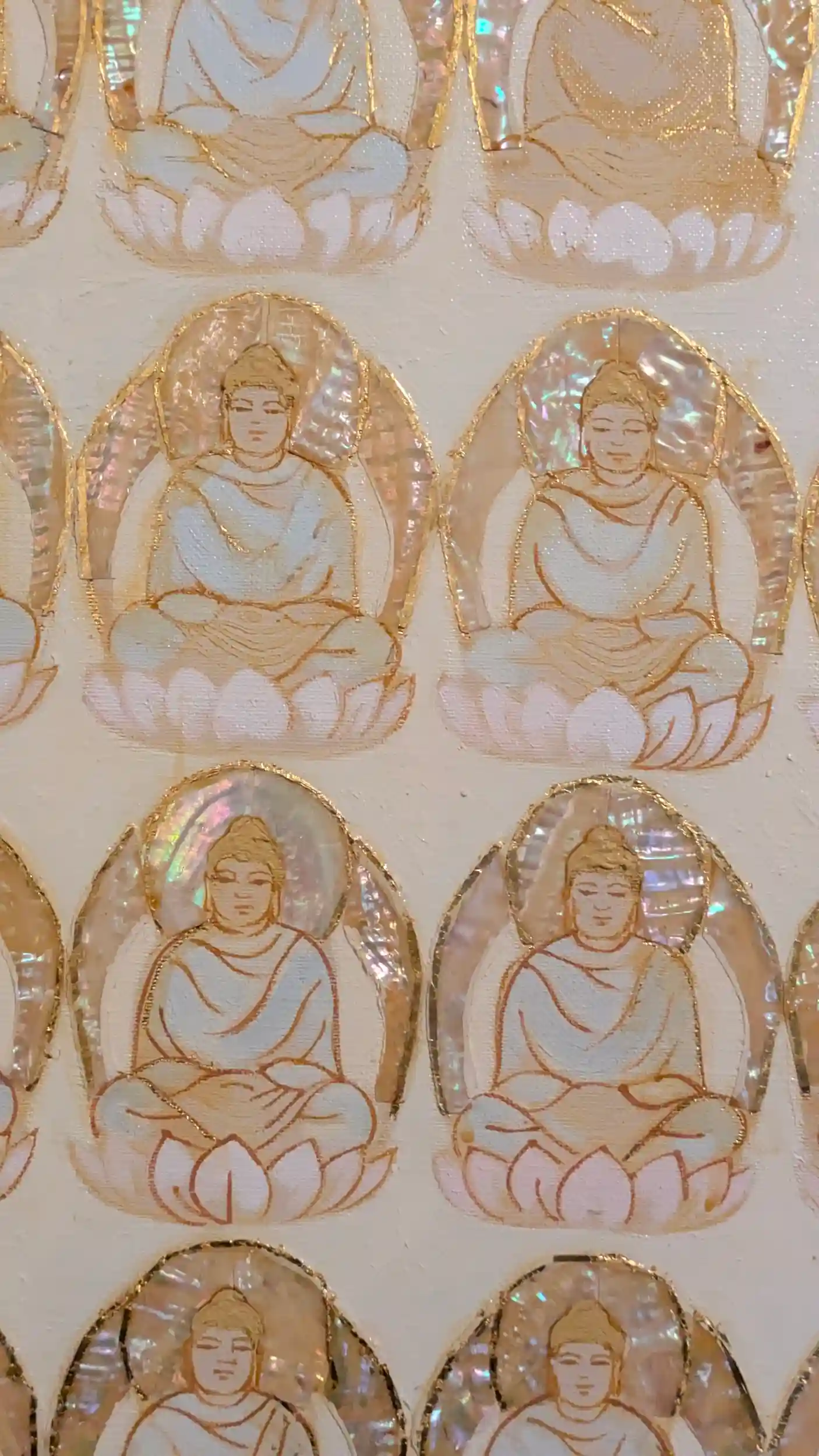 京都浄土宗寺院特別大公開仕切り直して國生寺へ。二階建てで一階は駐車スペース、二階が本堂でした。ステンドグラスの天蓋はなんか仏教寺院っぽくないと言えばそうなのですがそれを感じさせないのが壁と天井全面を埋め尽くす仏様。壁の物は白地に金で縁取られ、光背が螺鈿で作られているというこだわりよう。しかもこれが壁全面なので凄い数でしかも全部手作りとのこと😲ステンドグラスもなのですが先代のご住職がされたことなので(現御住職は後任で後継ぎではないため)どういった経緯で作られたのかはわからないそう。「自分だったら普通に金の天蓋にしてる」って笑っておられました。また、壁や天井の仏様の数をお聞きしても把握していないとのことで「良かったら数えていただいて構いませんよ」とのことでしたので丁重にお断りさせていただきました🤣時間があったらやってみても面白いんですが😅三寶寺のご住職がとも仲が良いとのことであちらもぜひお詣りくださいとのことでした😊