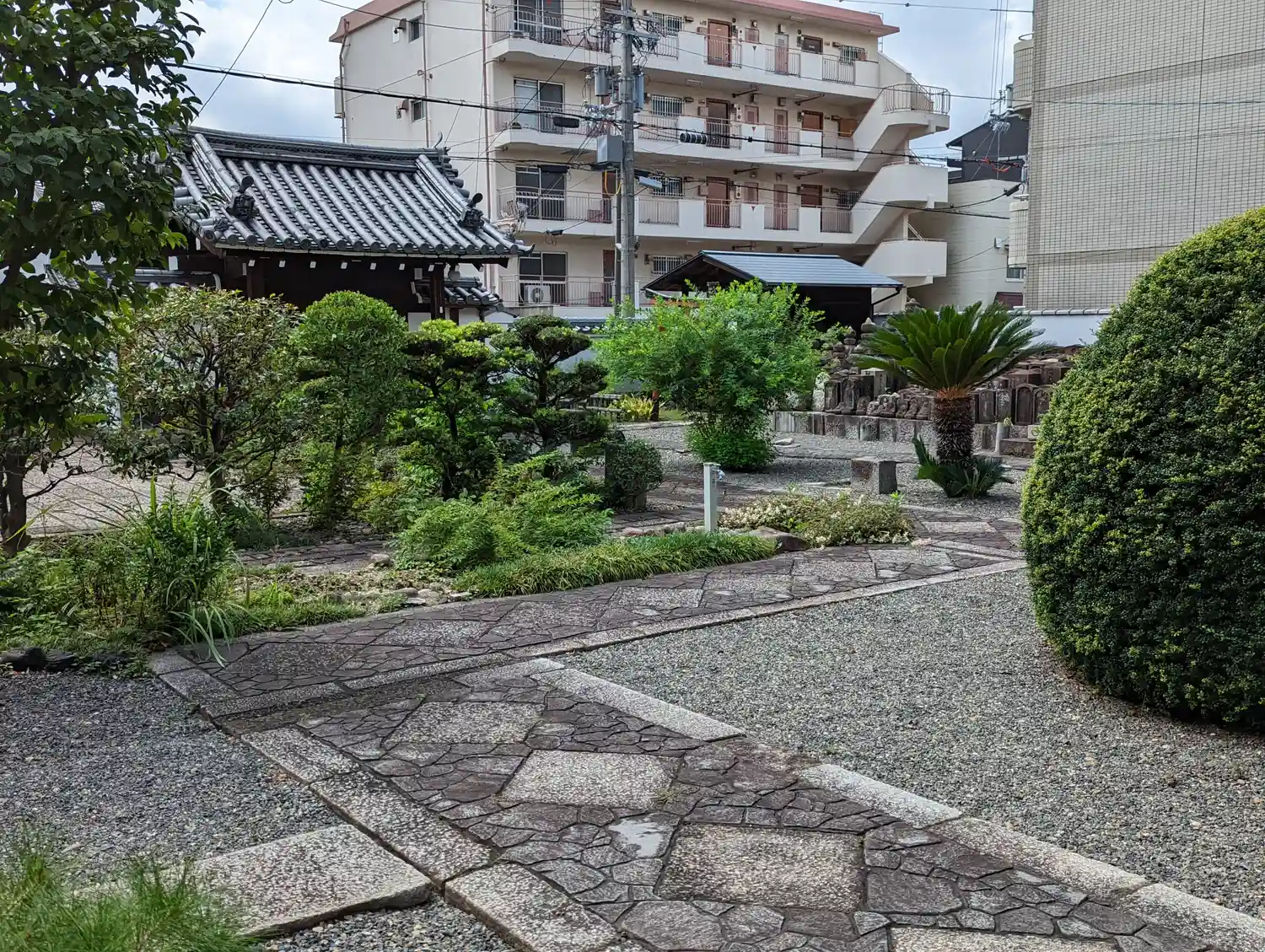 駐車場越しに本堂らしき建物