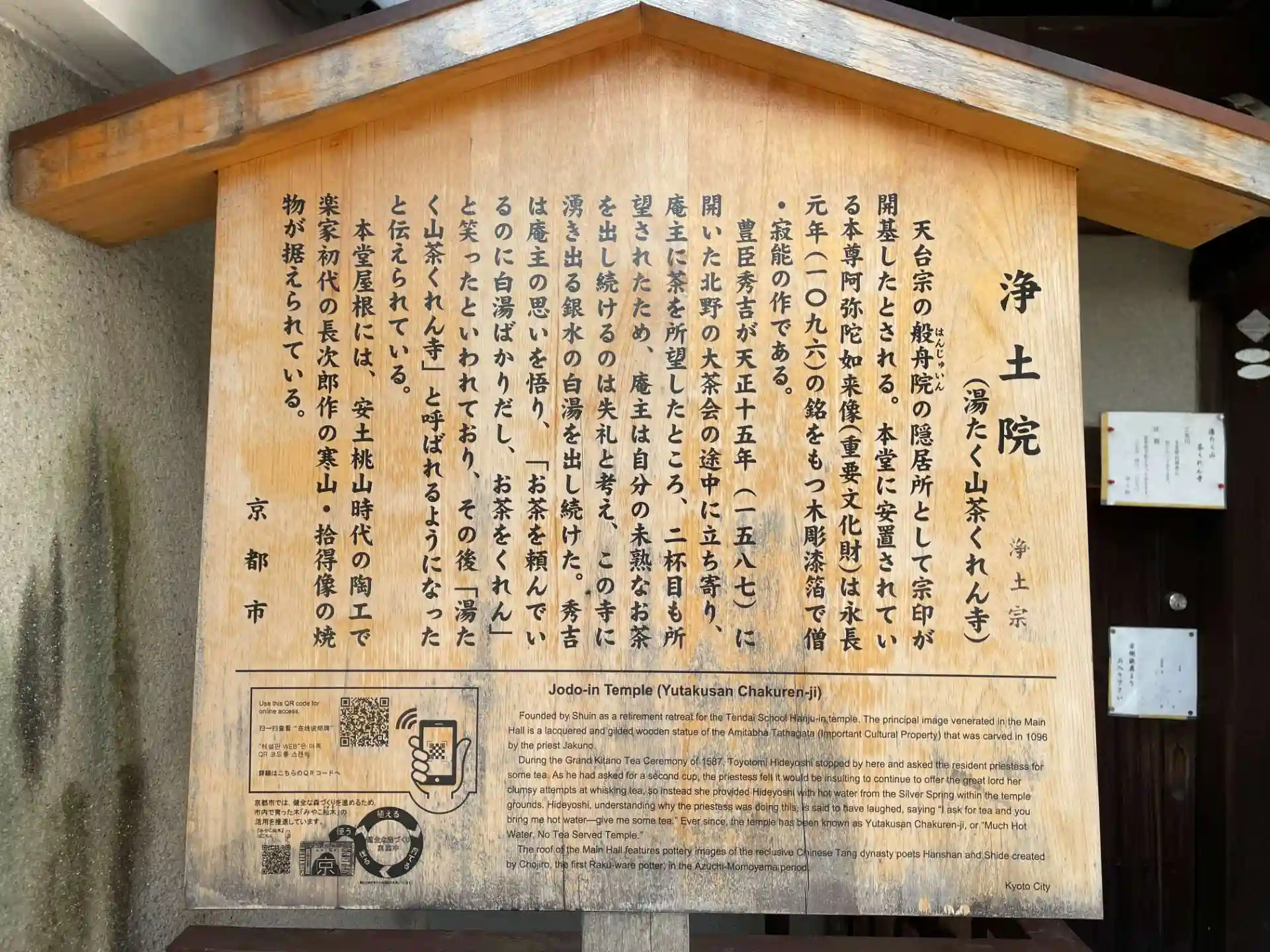 秀吉は庵主の思いを悟り 「お茶を頼んでいるのに白湯ばかりだし お茶をくれん」と笑ったといわれており その後「湯たく山茶くれん寺」と呼ばれるようになったと伝えられている。