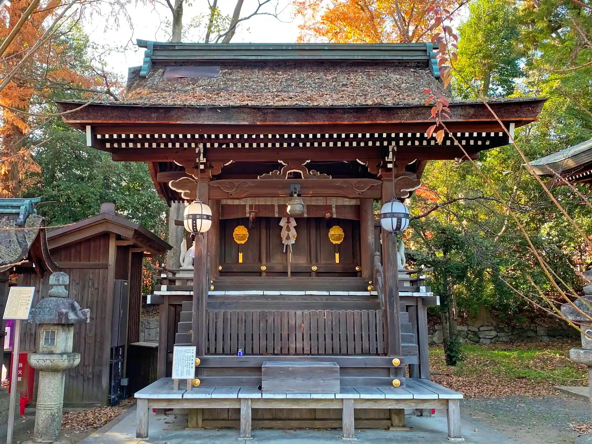 境内北西部にある境内社<牛舎(うししゃ)>。
